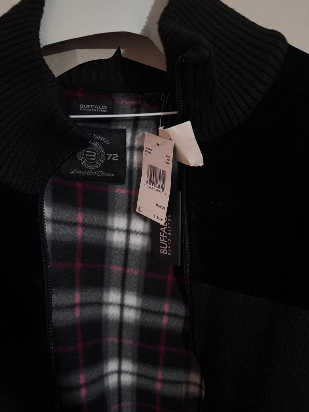 Selling a Buffalo David Bitton sweater in size XL/TG/XG. It's black and features a stylish design. Originally priced at $129.00.