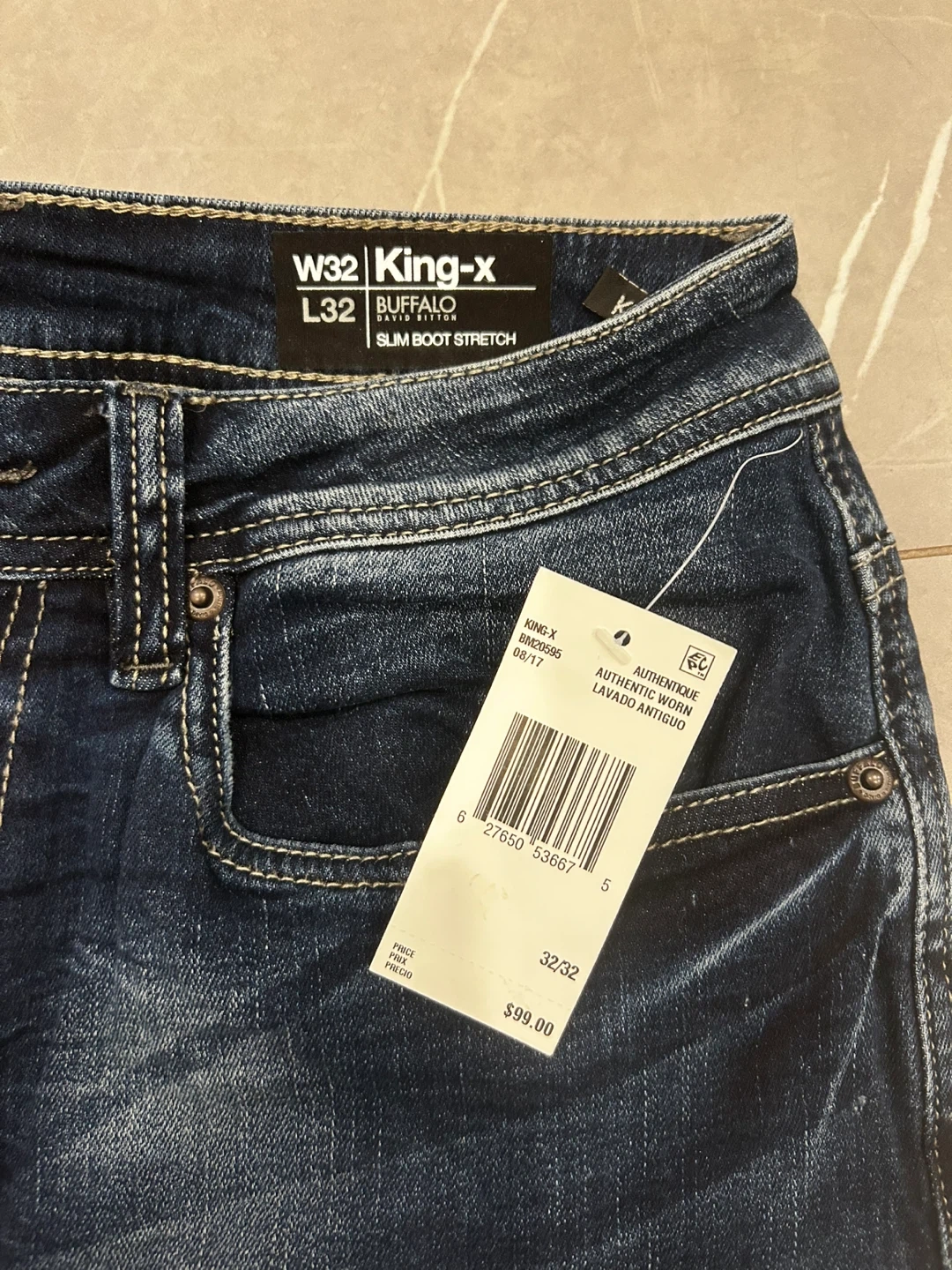 414Selling a brand new pair of Buffalo King-X jeans! These are a slim boot stretch style in size W32 L32. The tag shows they were originally priced at $99.00. They have an authentic work lavado antiguo wash. Feel free to reach out if you're interested! Cash only Pick up Mississauga Square One