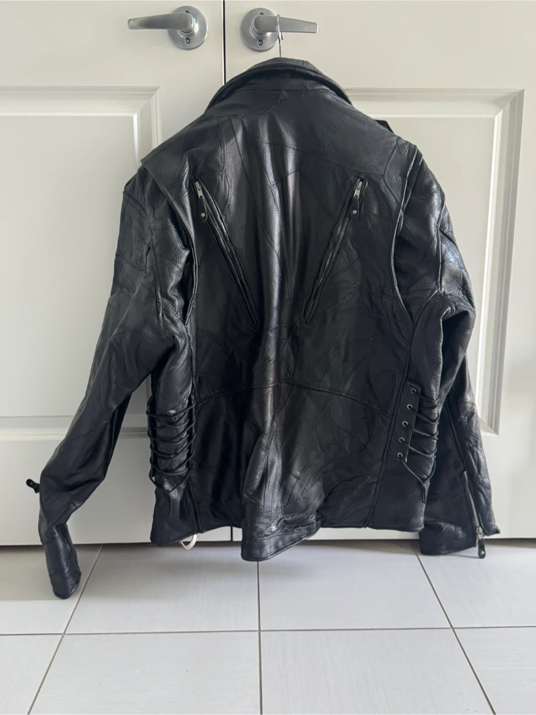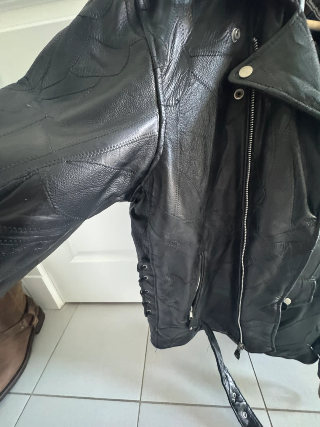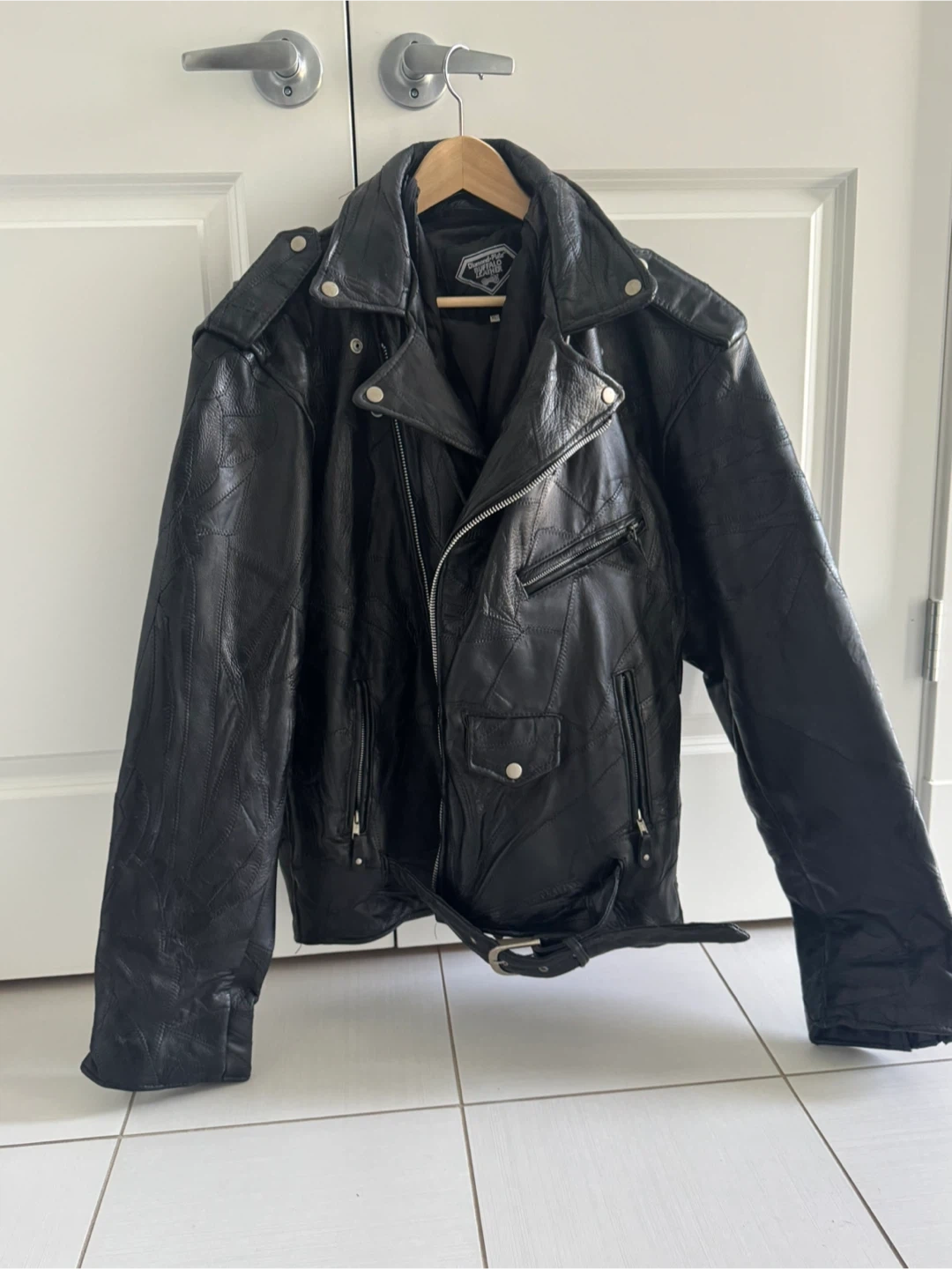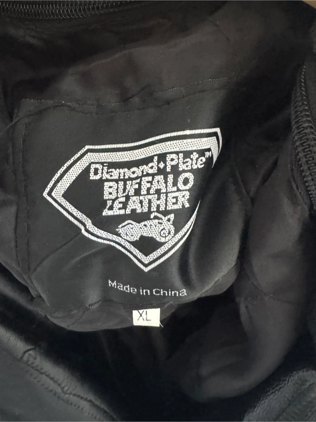 Genuine Diamond Plate buffalo leather motorcycle jacket, size XL. • Worn once – like new condition • Heavy-duty buffalo leather shell • Quilted polyester lining for comfort • Zippered front with belted waist • Multiple zippered pockets and side lacing Excellent quality and very durable. Retails $150–200 new