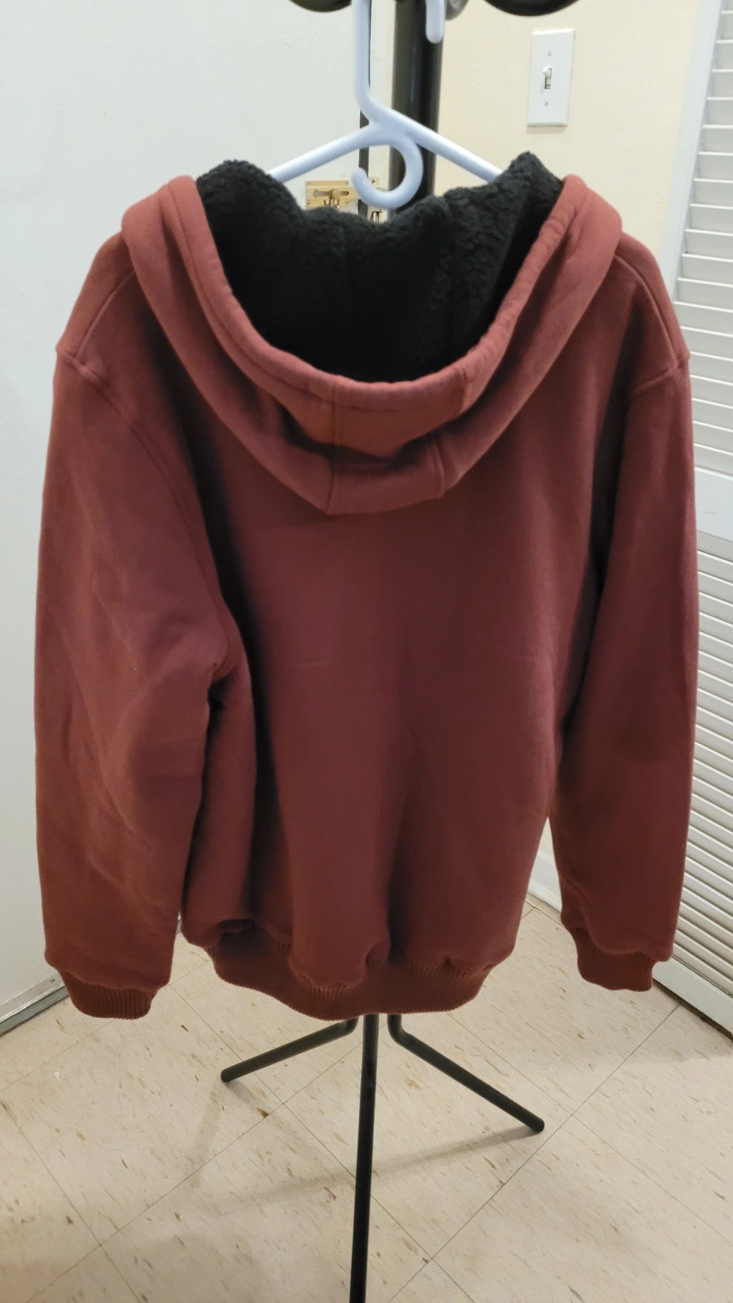 75This winter hoodie spent most of its time in the closet. I never used it. You can see the measurements in the last picture and easily compare them with your current hoodie to find out if this hoodie fits you well. I purchased it for $109+tax. It's more of an outdoor hoodie.