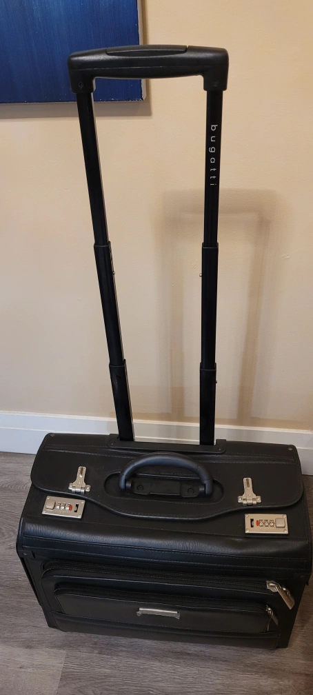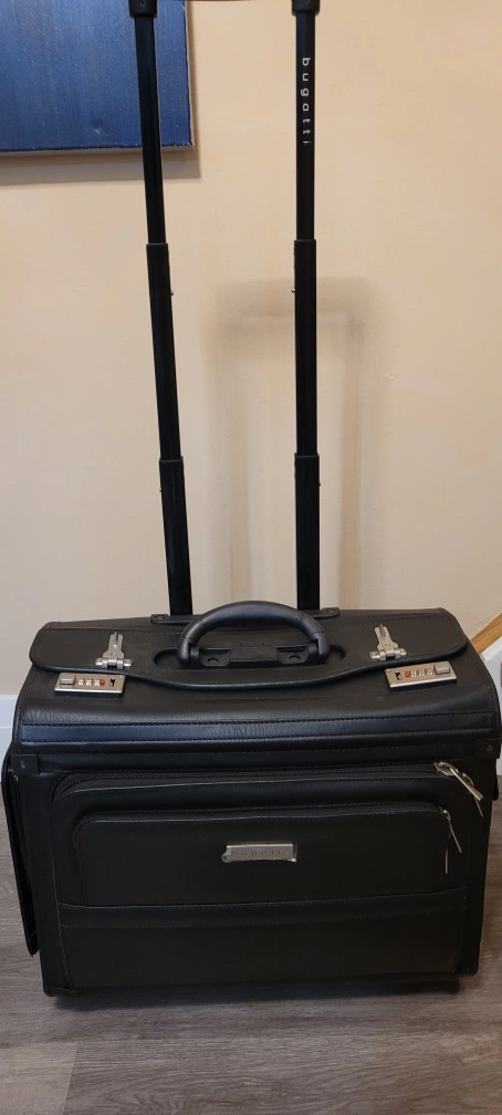Selling a Bugatti rolling briefcase in black. It's in great shape and perfect for business travel or everyday use. Features a retractable handle and multiple compartments for organization