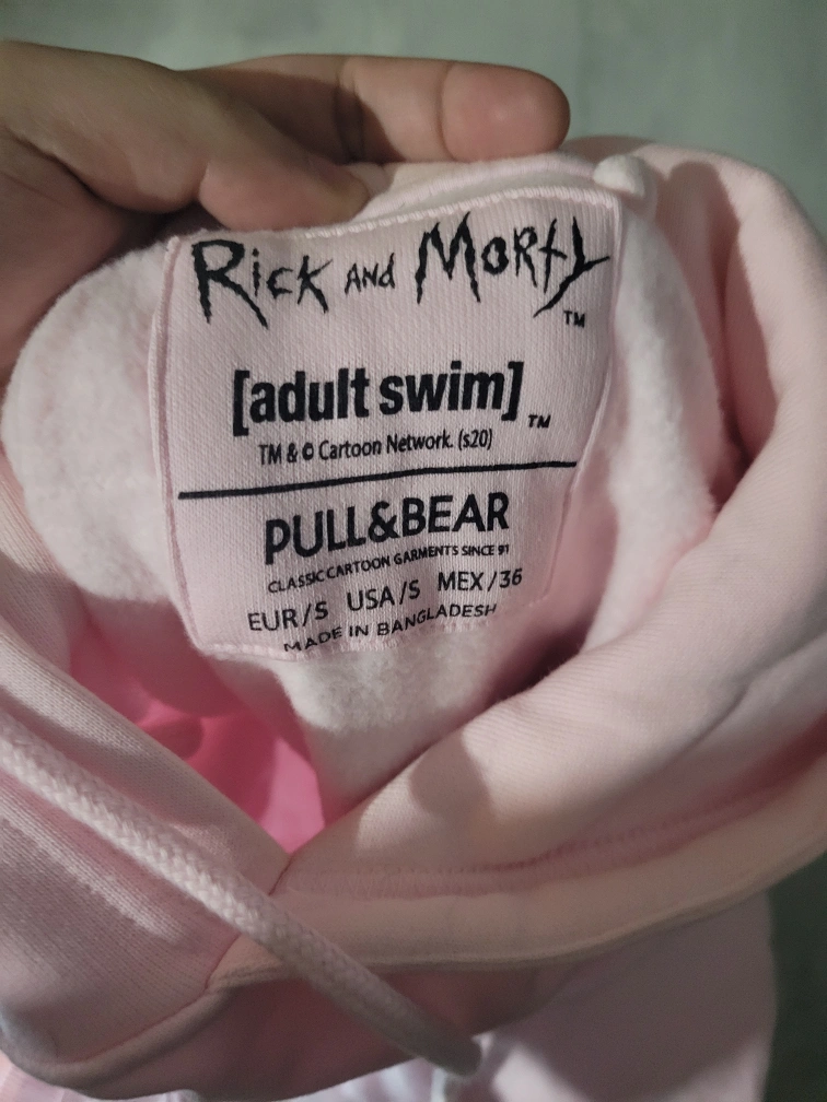 Selling a Rick and Morty hoodie from Pull&Bear! It's a size small and has a cool graphic on the back. The colour is a soft pink. Great for any fan of the show!