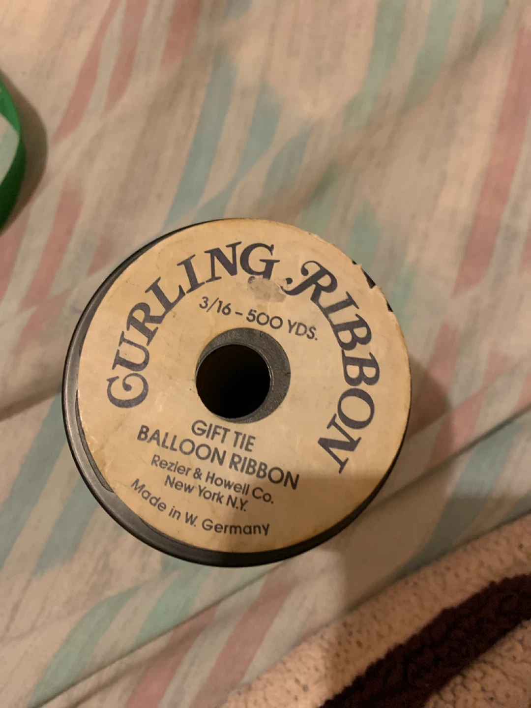 Selling a roll of Gurling Ribbon, perfect for gift tying and balloon decorations! It's a 3/16 inch ribbon with 500 yards. Made by Rezler & Howell Co. in New York