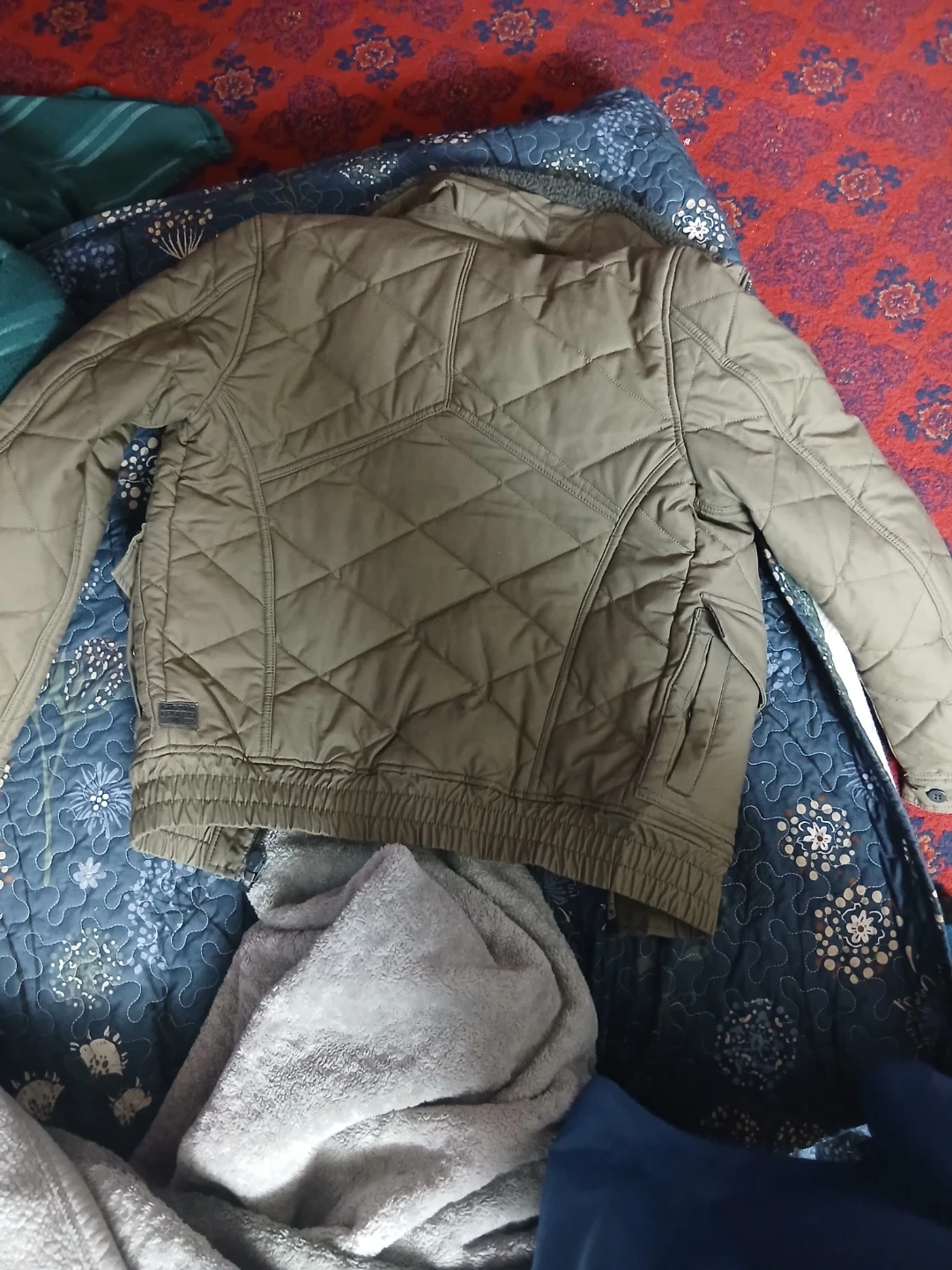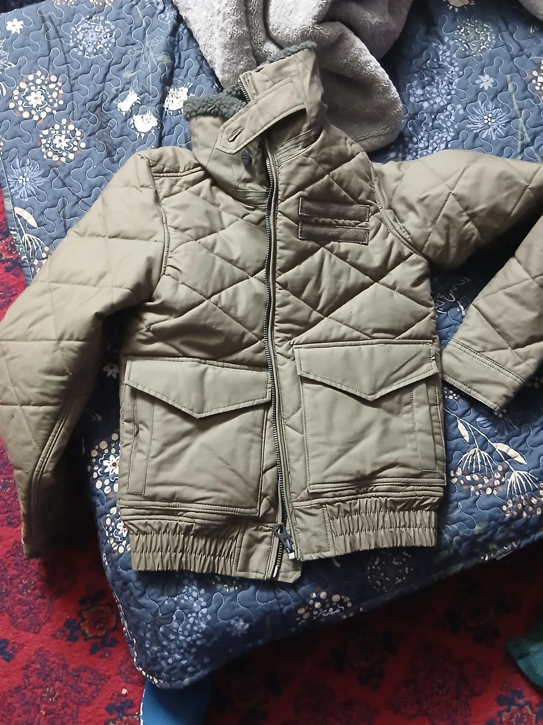G-Star RAW quilted jacket in a khaki colour. It's a stylish outerwear piece with a full zip closure. The jacket features multiple pockets for convenience. Perfect for cooler weather!