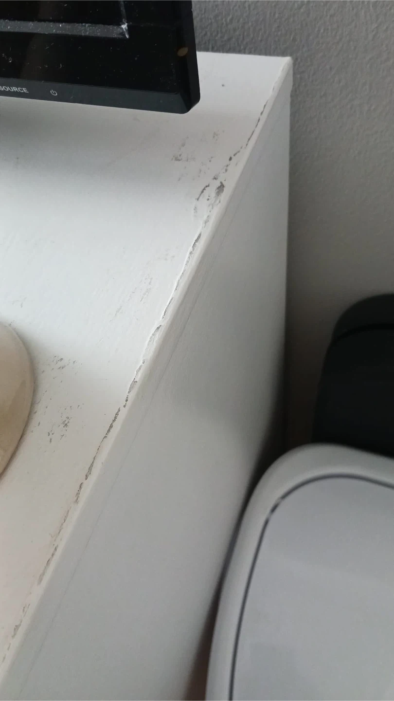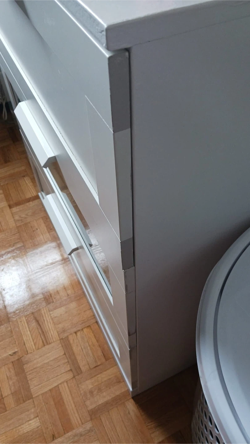 White 3-drawer dresser with one frosted glass drawer front. It's a great storage solution for any room. Its simple design fits most decors.