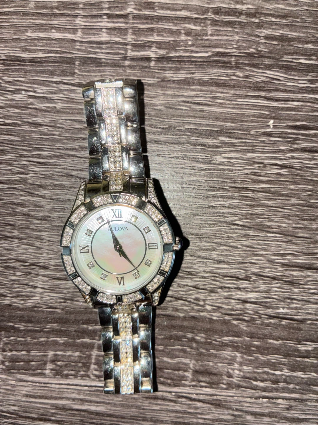 116Selling a beautiful Bulova ladies' watch with diamond accents. It's in great condition and ready to add some sparkle to your wrist!