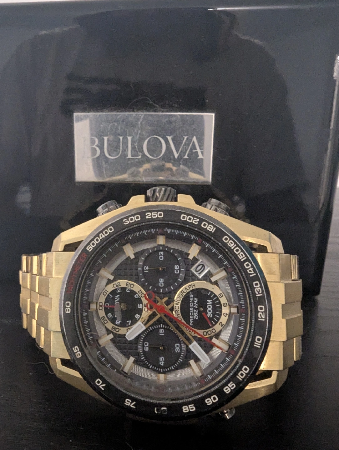 Selling a gold Bulova men's watch that comes with its original box. Retails for $1,200. Contact for more details.