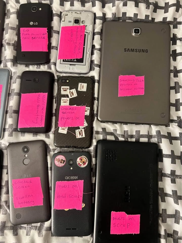 112Old phones for sale needs fixing all power on but have cracked screens. $100 for the whole lot asap