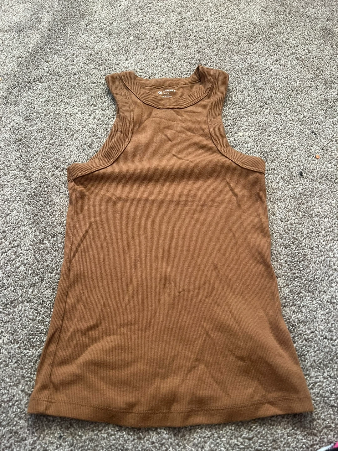 17Old Navy tank top XS brown, Old Navy active top S Pastel Green, and the Spider tank is S black, and Bench T shirt S Navy