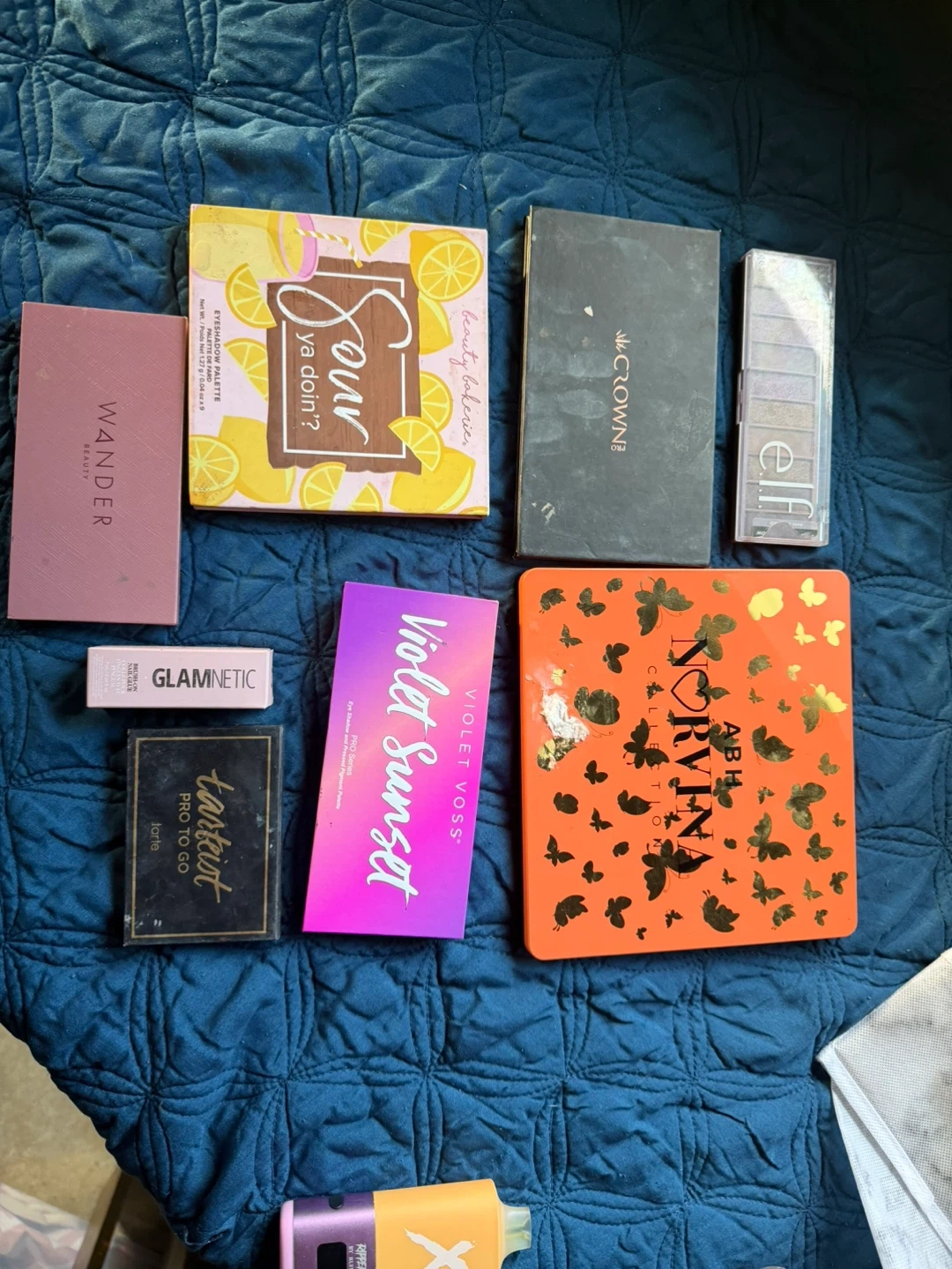 SELLING AS BUNDLE ONLY Selling a variety of makeup palettes from different brands! Brands included: - Wander - ColourPop - Crown - e.l.f - Glamnetic - Tarte - Violet Voss - Anastasia Beverly Hills (ABH) Perfect for anyone looking to expand their makeup collection or try out new colours and styles. They all have been used maybe twice, but I never grab for them. They are disinfected and good to go.