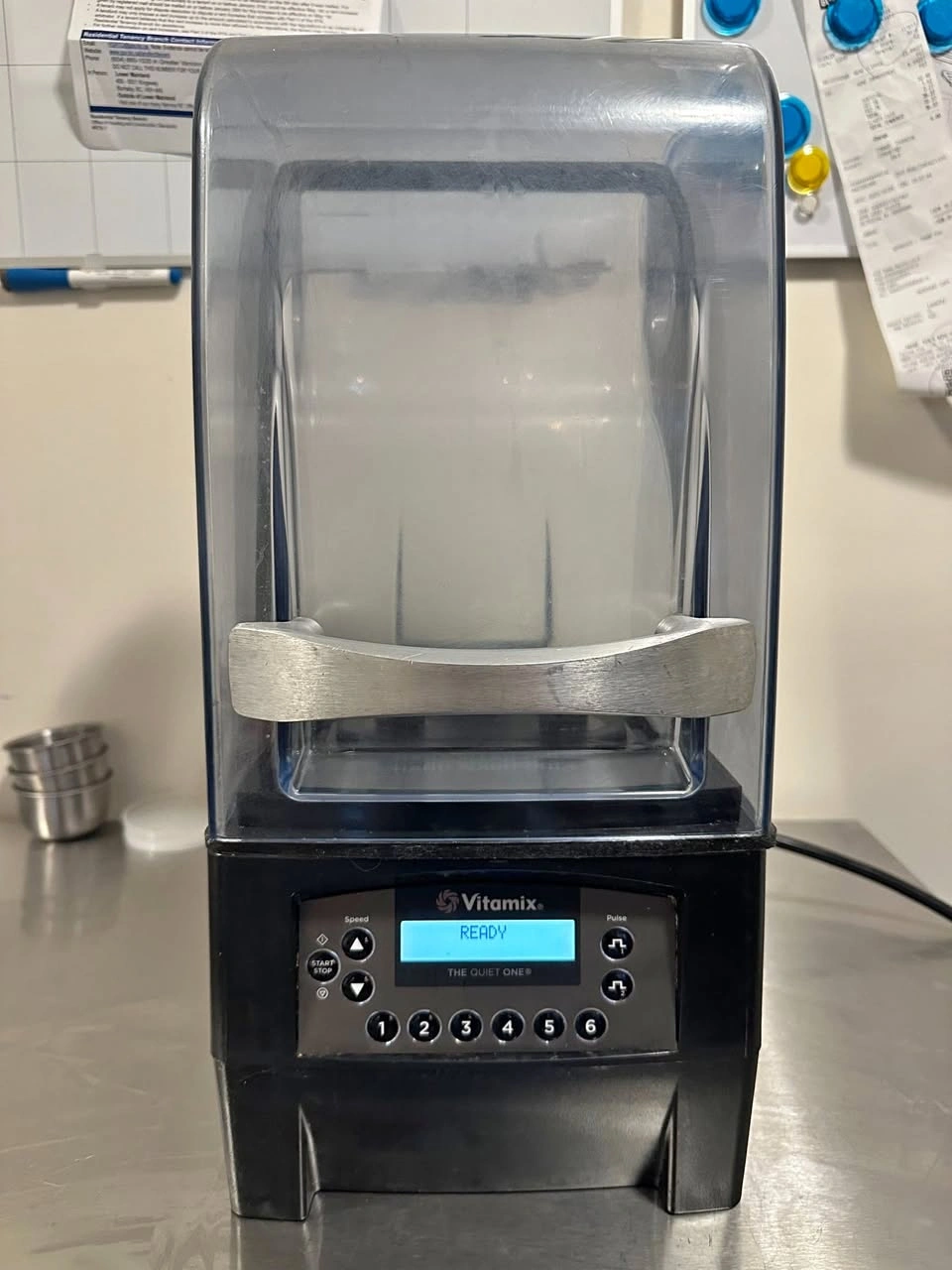 15Still works very well, no longer have a need for a machine with this kind of power. Comes with 3 blending jugs. The Quiet One is trusted by shops around the world for its groundbreaking hush, with speeds that softly blend at the decibel level of a nearby conversation. This product is intended for commercial use only. Easy to Clean: The container and lid are both dishwasher-safe, or can be cleaned by blending a drop of dish soap and warm water for 35 seconds. Advance® Container: Our Advance Blade container creates faster, smoother pours resulting in time and cost savings along with improved customer experience, reduced noise, and longer container life.* Patented Noise Reduction: Air management and a powerful 3-peak output HP motor reduces noise, improves reliability, and minimizes downtime. Optimized Programs: Use 6 program buttons with 34 optimized settings for easier, consistent blending across locations. 3-HP Motor The ≈3 peak output horsepower motor quickly pulverizes ingredients and blends multiple servings of smoothies, frappés, and frozen drinks with ease. Product Specifications Dimensions : 45.72 x 21.59 x 27.17 cm (HxWxD) Height with lid open: 62.23 cm Blades : Laser-cut, stainless-steel HP : 3 peak Electrical Ratings : 120 V, 50/60 Hz, 7 Amps Capacity : 1.4-litre Product Weight : 8.7 kg (10.47 kg with box) Material : BPA-free plastic Cord : 4 ft