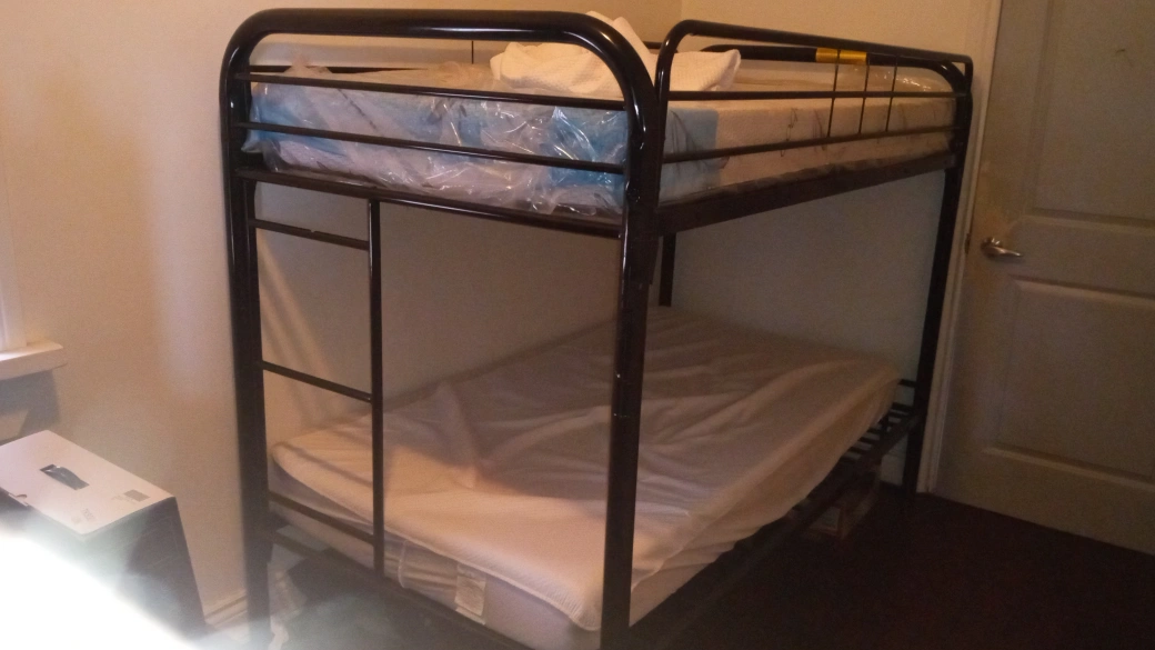 10had this bunk bed for a week as I had a guest the bottom bunk was being used only for one week. so yes it is now classified as a used bunk bed however it's new make an offer. .bunk beds for sale twin extra large. 1 mattress is brand new, with original plastic. comes with a mattress cover. the weight capacity is 200 lb. address will be provided upon confirmed purchase.