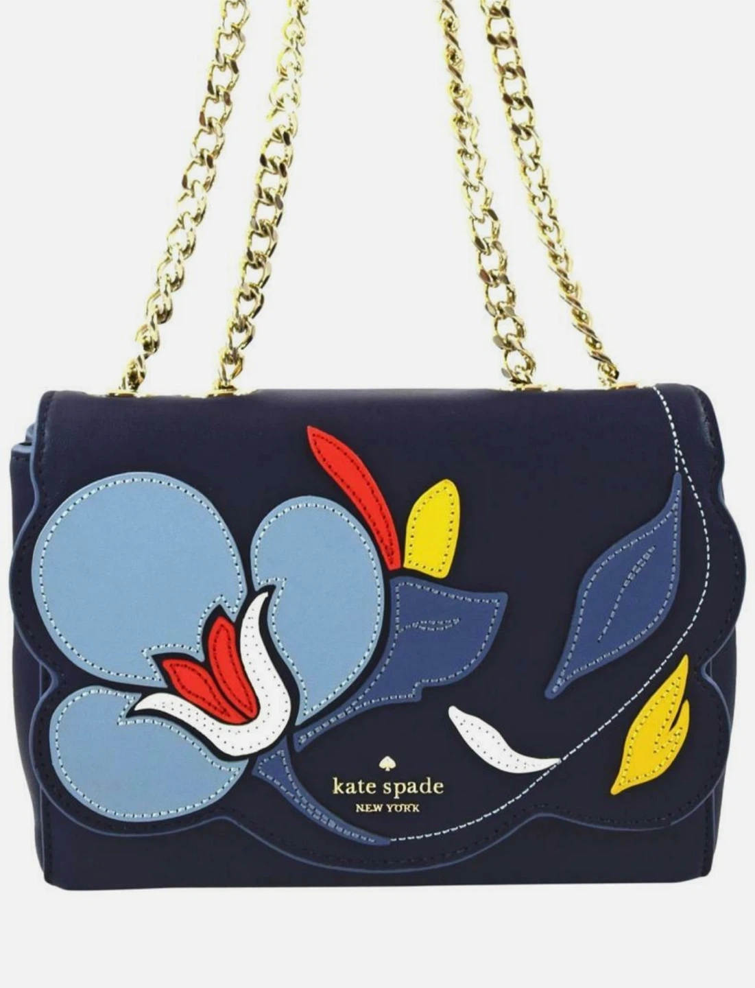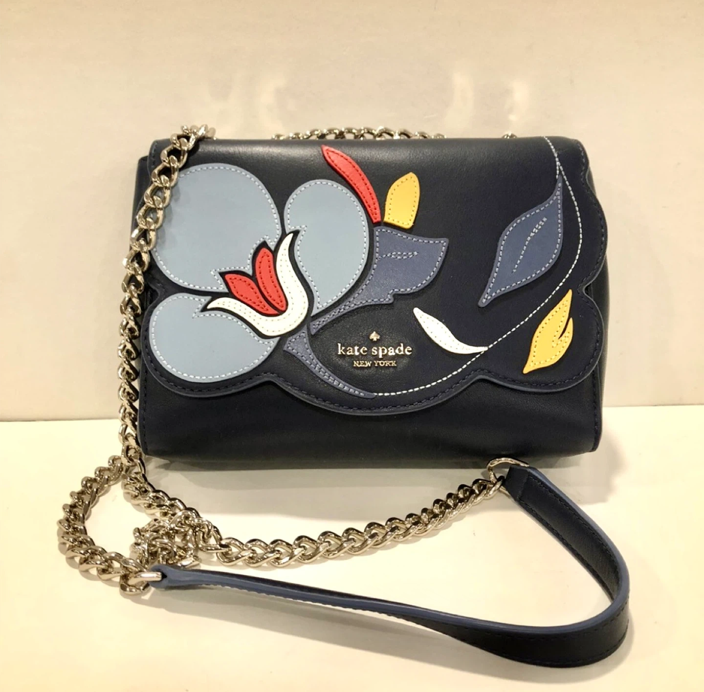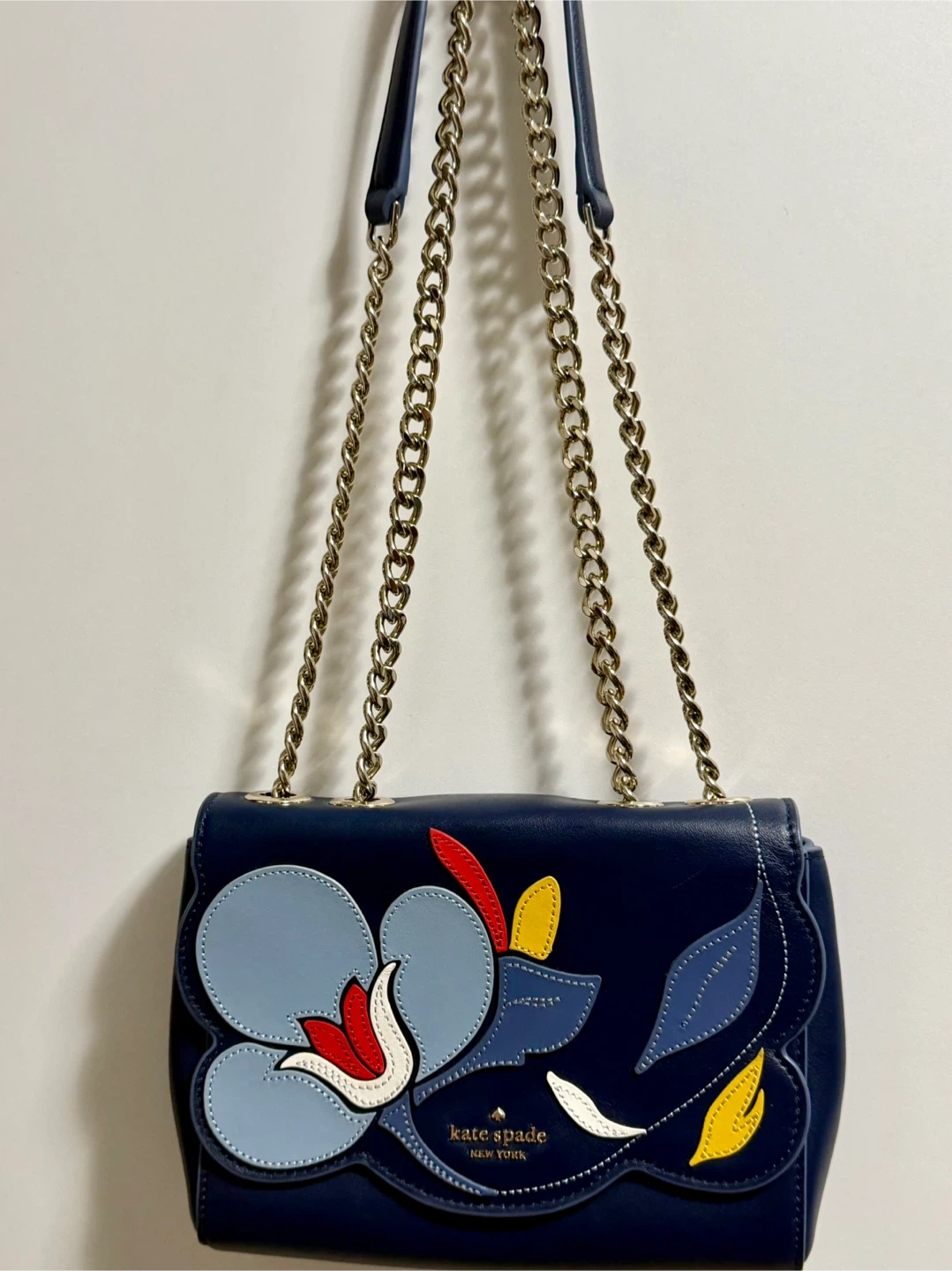 Selling a beautiful Kate Spade handbag in navy blue with a stylish floral design.
