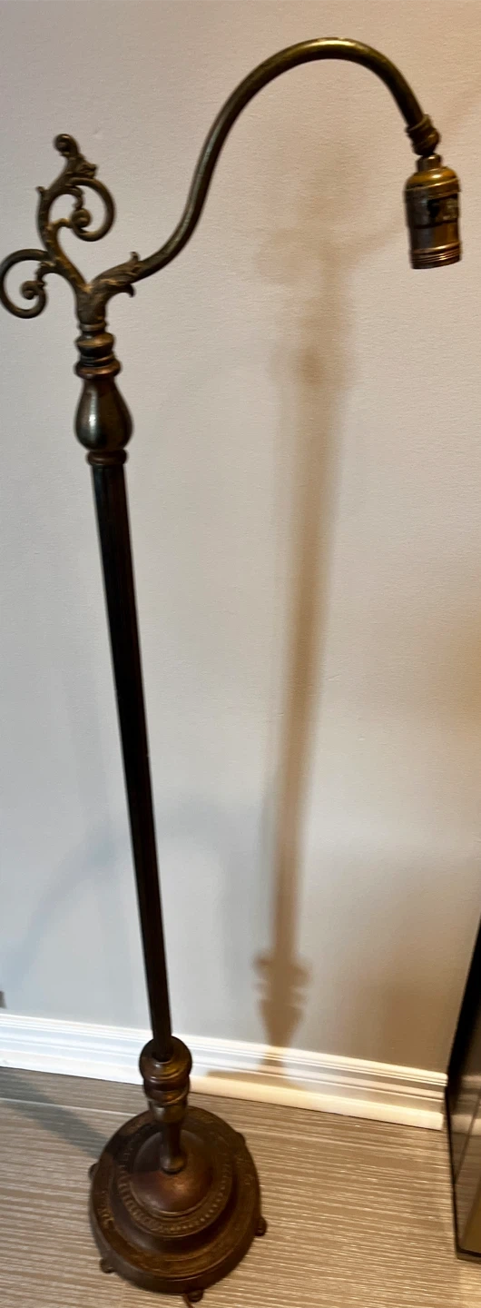 This antique floor lamp is a bridge arm floor lamp, a style that was highly popular during the late 19th to early 20th centuries, typically dating from the late 1800s to the 1930s.