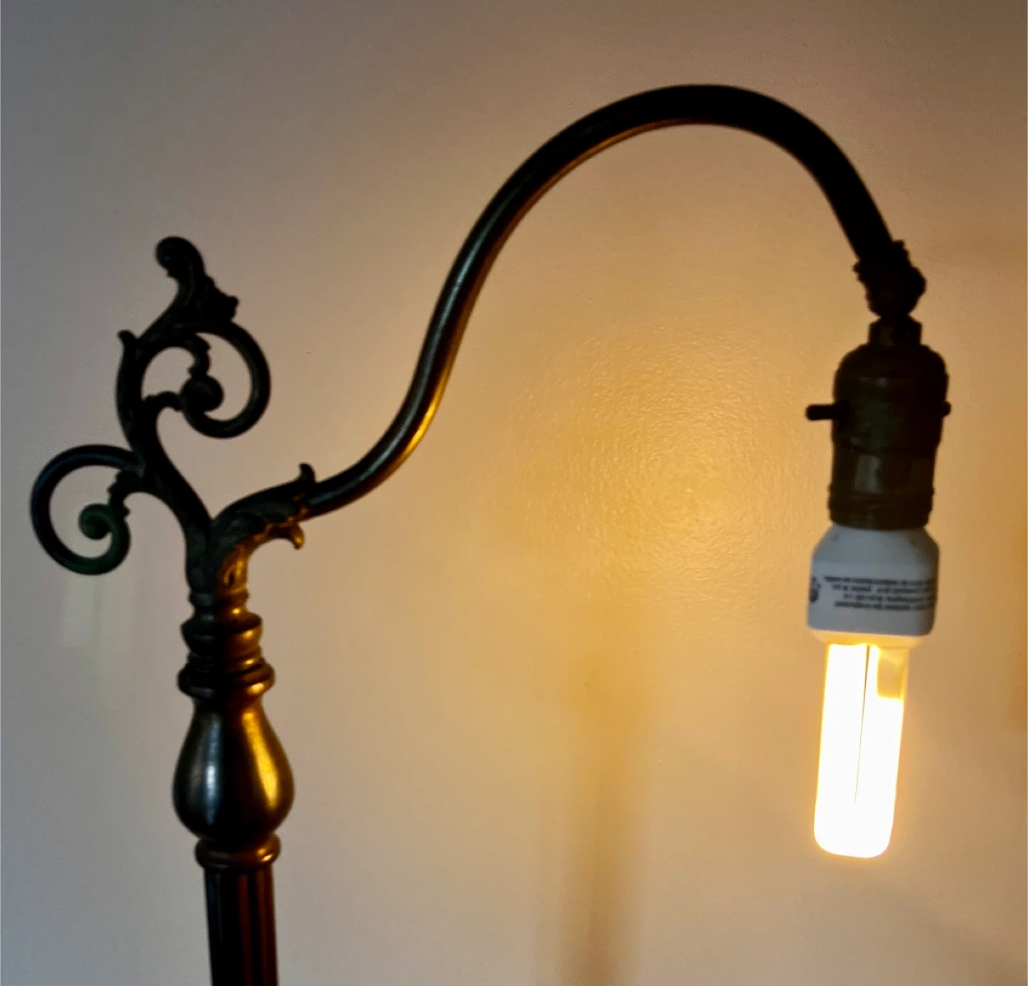 Bridge Arm: The distinctive curved "bridge" arm was designed to position the light source over a shoulder for reading, making these frequent additions to parlors and libraries.