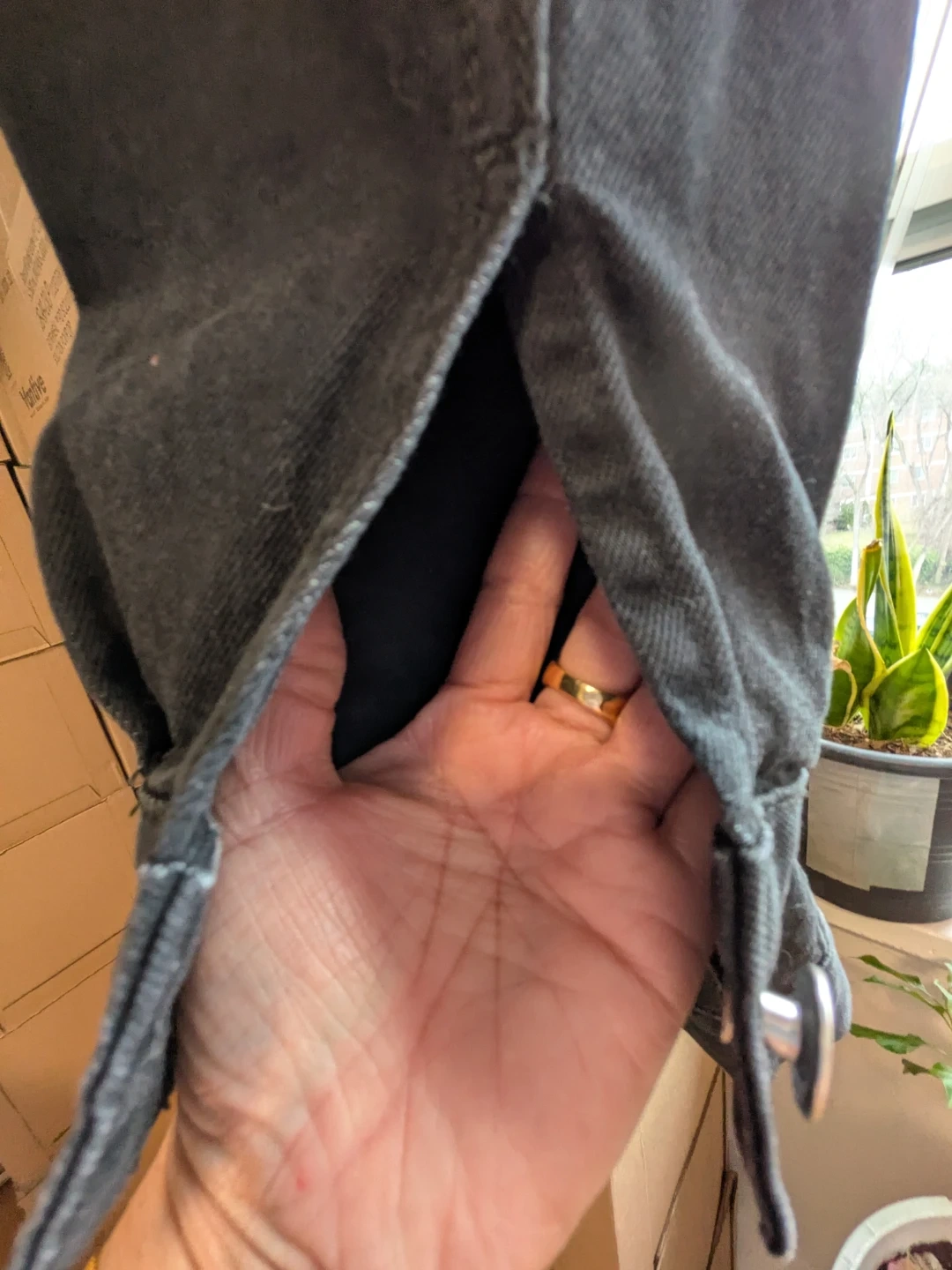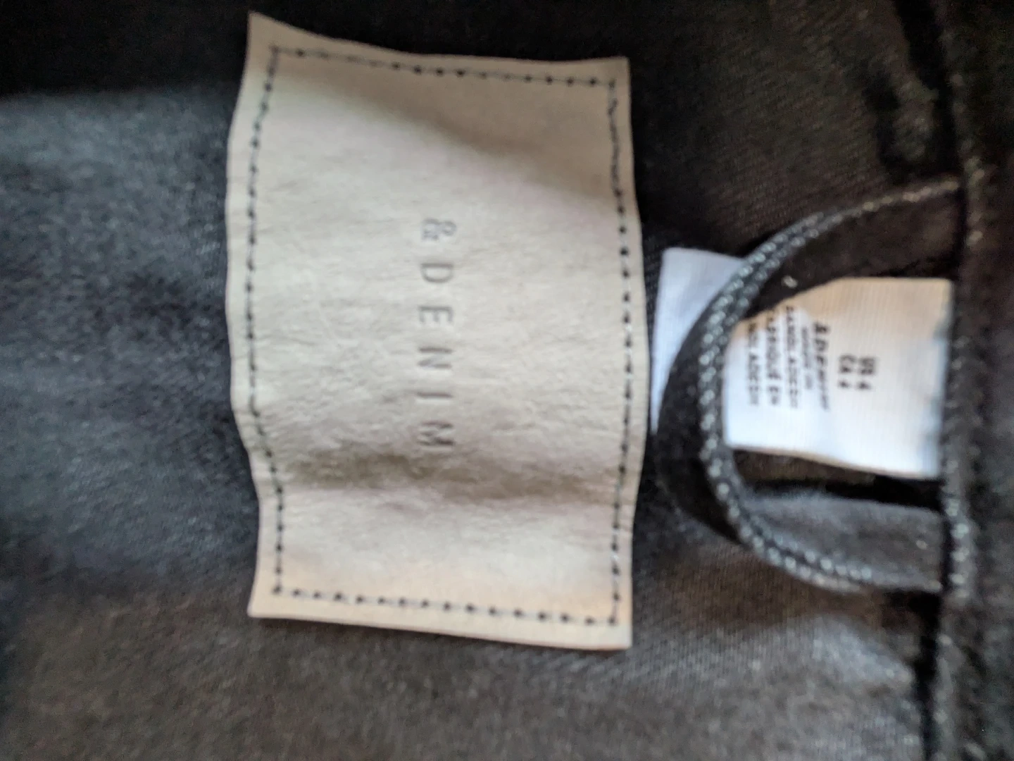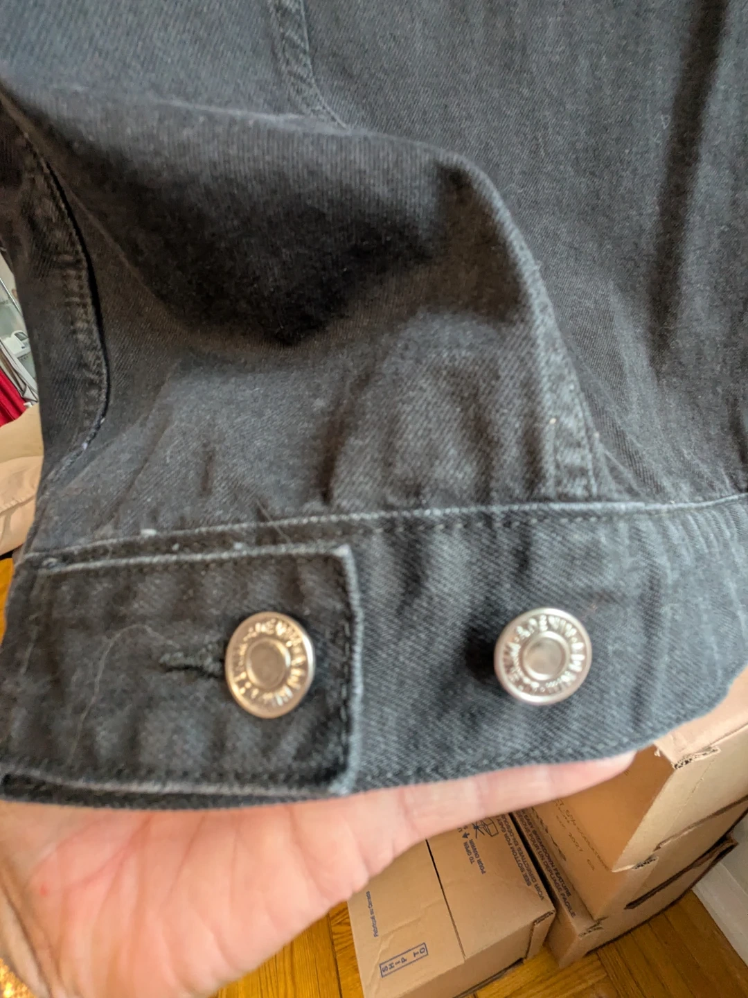 Classic black denim jacket by & DENIM. Button-up front with two chest pockets. This jacket's made from sturdy denim material. Great for layering over any outfit!