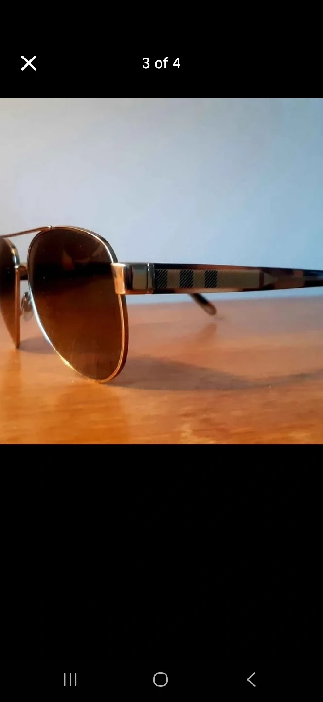 10Selling a pair of Burberry Aviator sunglasses. They are in good condition and feature the classic Burberry check pattern on the temples. Stylish and perfect for sunny days!