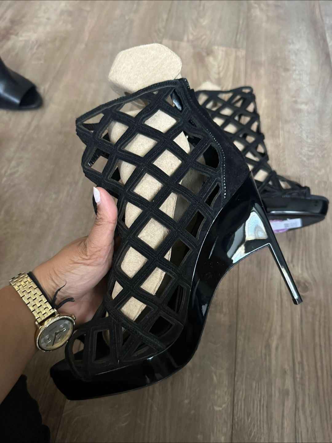 Selling a cute pair of burberry black cage heels in size 9! They're in great condition and would be perfect for a night out or a special occasion. The unique cage design is sure to turn heads!