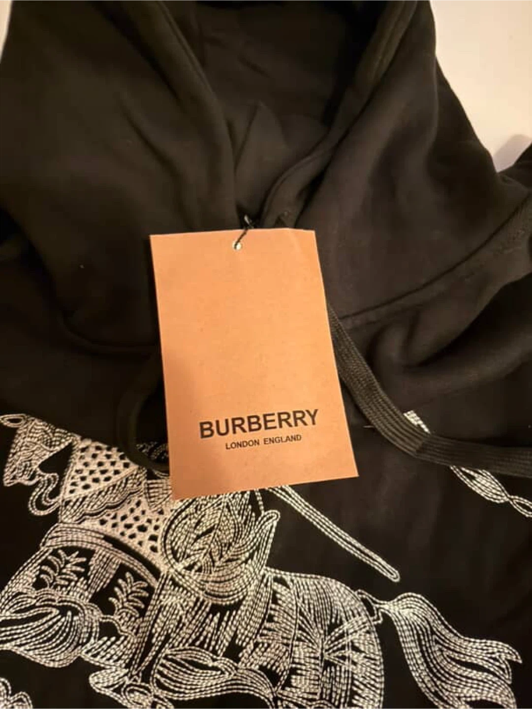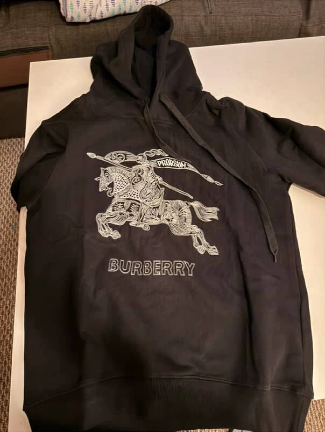 Selling a pre owned mint condition Burberry Embroidered Drake Logo-Print hoodie in black.