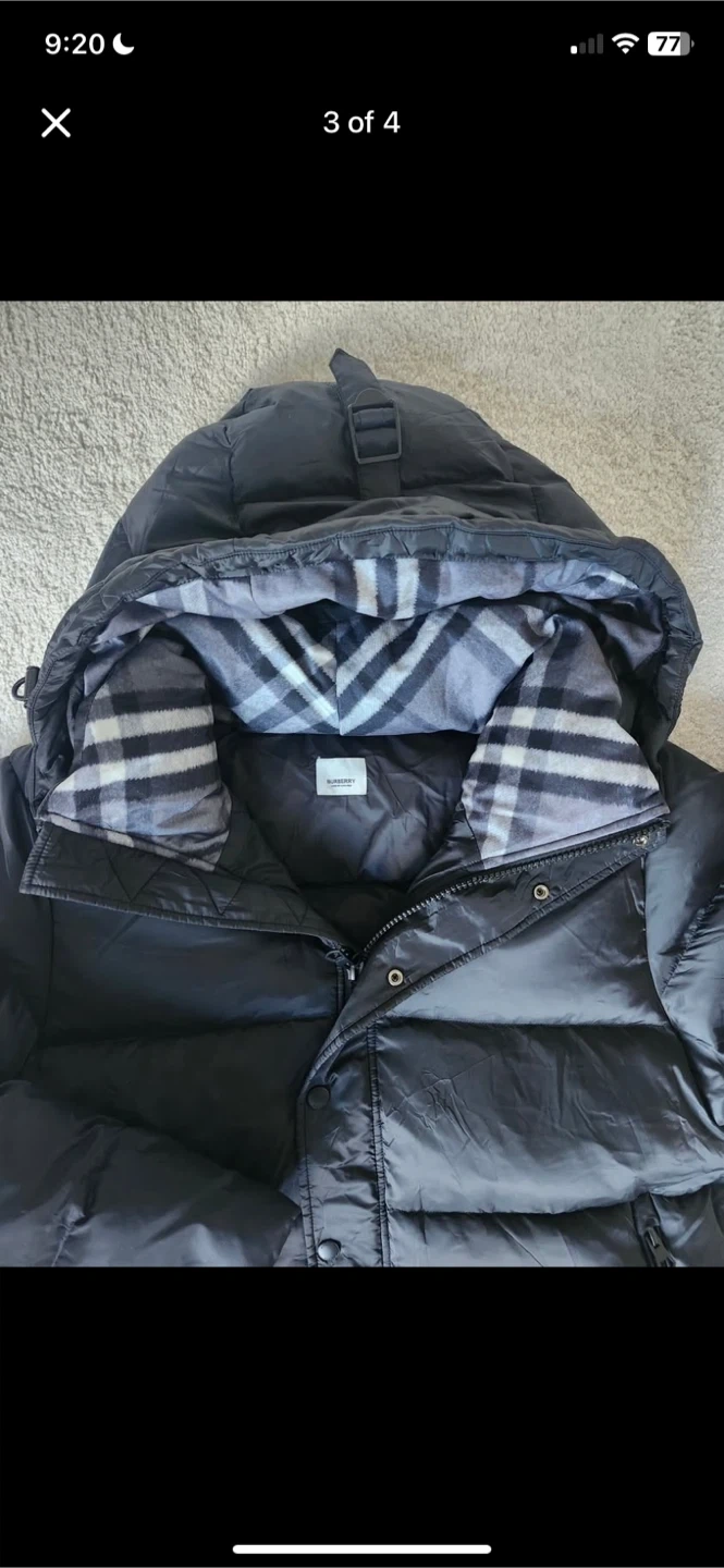 18BRAND NEW NEVER WORN PICKUP IN OAKVILLE NO TRADES SIZE L SERIOUS INQUIRES ONLY PRICE FIRM! Selling a stylish Burberry black puffer jacket! It's in great condition and ready to keep you warm this winter. The jacket features a hood and the classic Burberry pattern inside. Comes with the original Burberry garment bag!