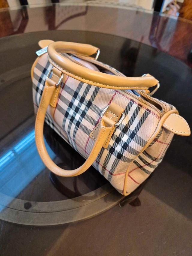 This is a used Burberry handbag with the classic plaid design. It's perfect for adding a touch of luxury to any outfit. The bag is in good condition, showing some signs of wear but still has plenty of life left. Here are some details: * Brand: Burberry * Material: Canvas and Leather * Color: Classic Plaid * Style: Handbag If the ad is up, it's available!