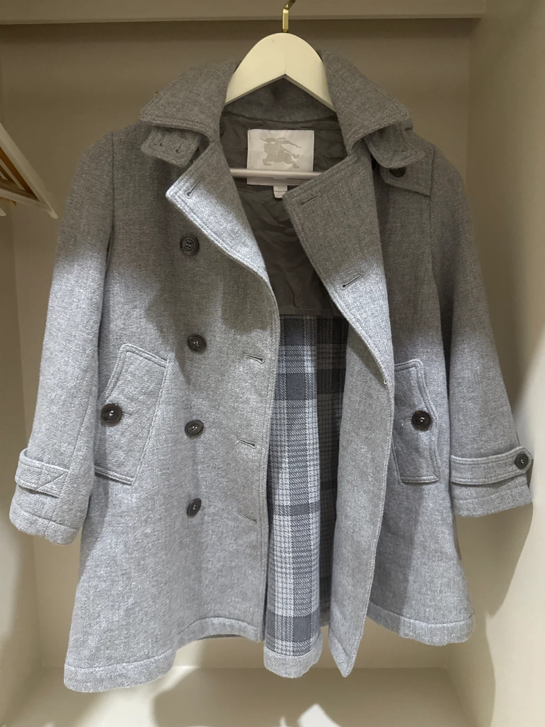 60A lovely Burberry kids coat in a grey wool blend! It's in great condition and ready for a new home. Made in Italy