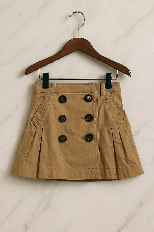15This is a Burberry kids skirt in size 10. It features a double-breasted design with buttons and a pleated style. The skirt is in good condition and ready for a new home!