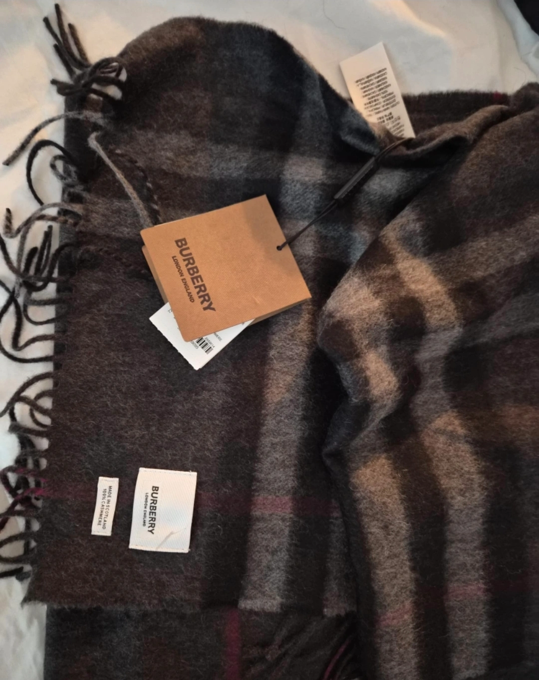 Keep cozy with this Burberry London England scarf! The scarf is made of wool and has a stylish plaid pattern. It's in new and ready to keep you warm!