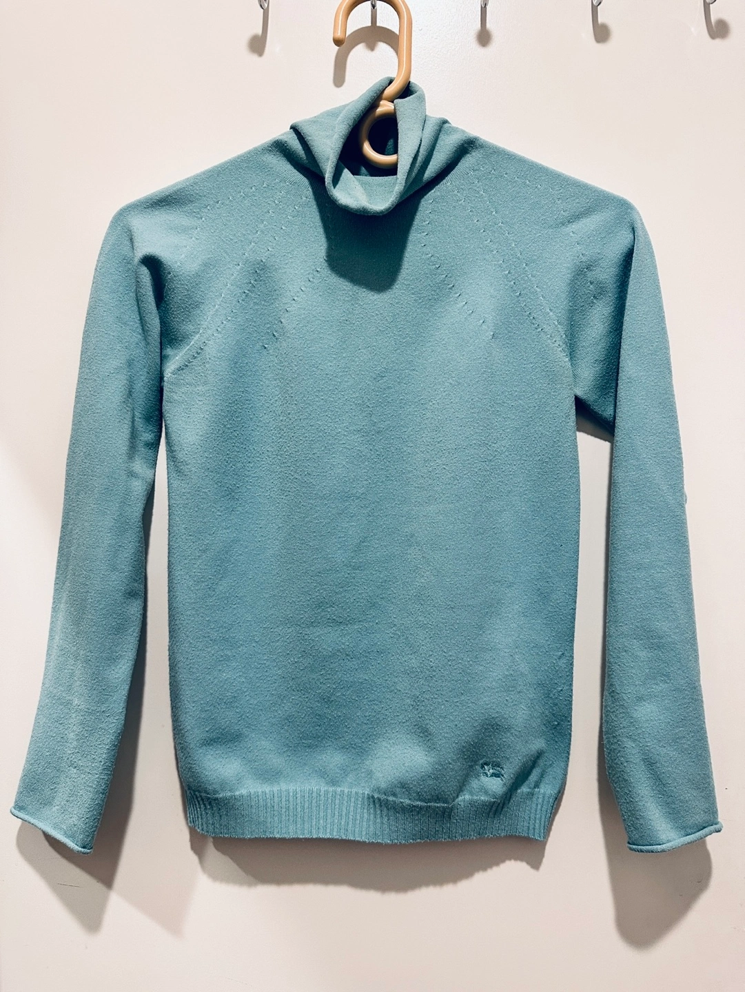 Light blue turtleneck sweater. Long sleeves. Made in Italy.