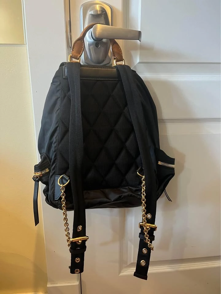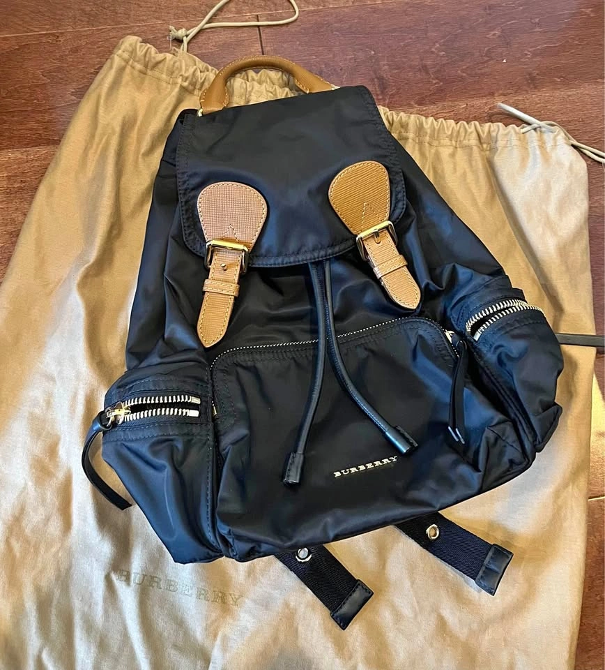 65Authentic Burberry nylon rucksack in pristine condition. Comes with dust bag. Features drawstring closure and adjustable straps. Dimensions: L 9" x H 13" x W 5.5"