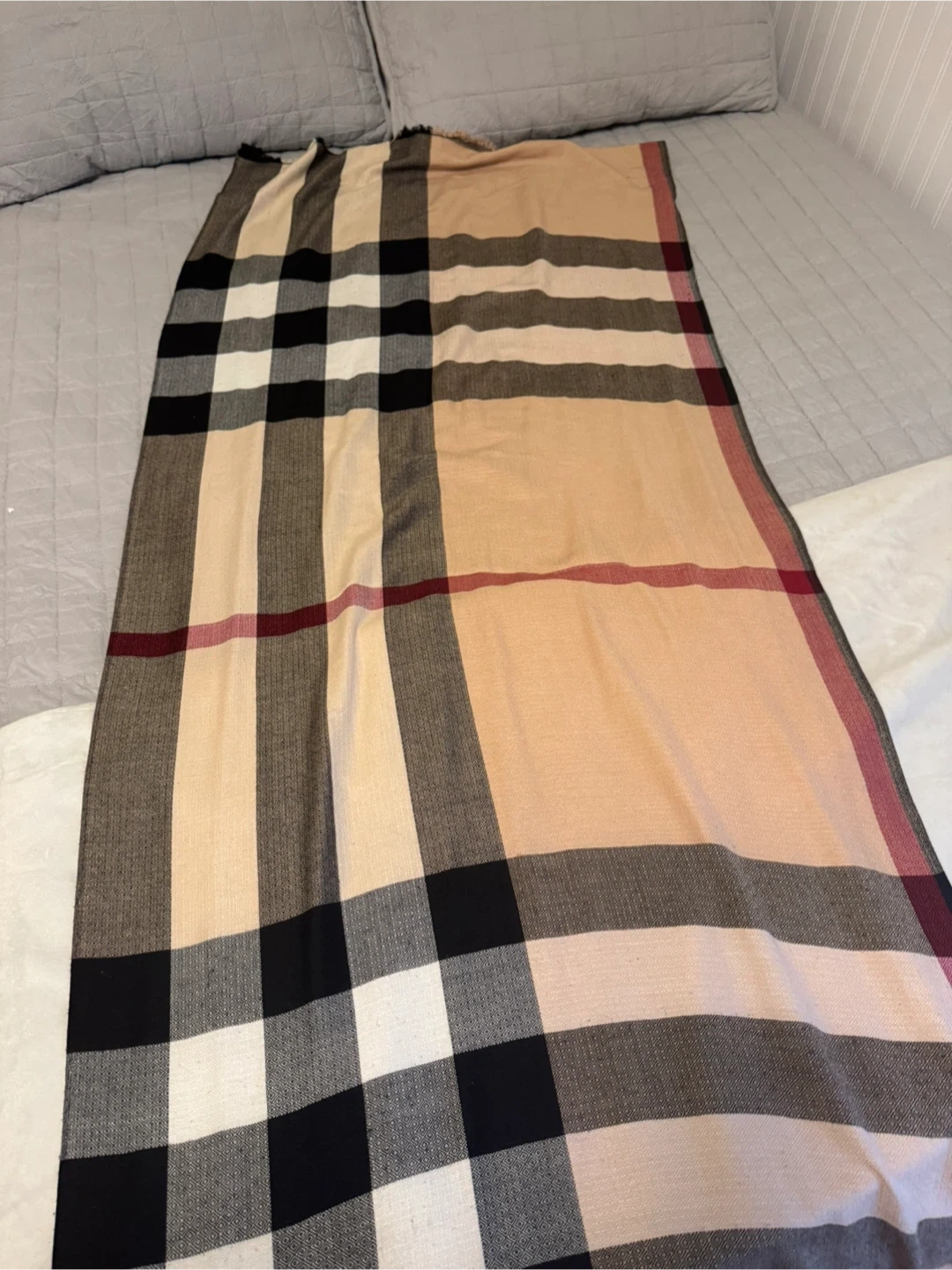 10Selling a Burberry scarf in a classic plaid pattern. It's in great condition and perfect for adding a touch of style to any outfit. The scarf is made of soft material and is sure to keep you cozy during the colder months
