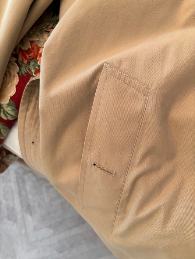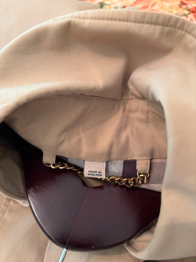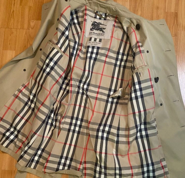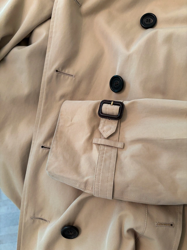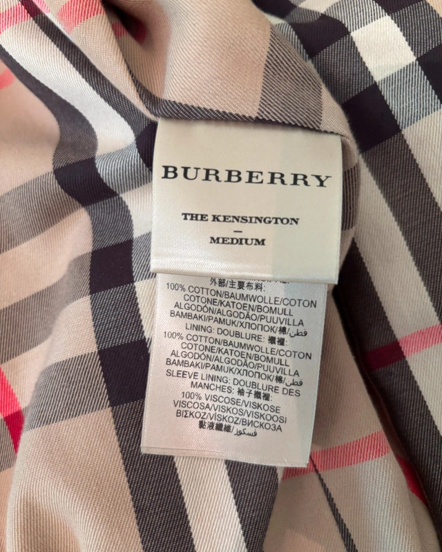 The Burberry Kensington Men's Trench Coat is a timeless British classic that combines elegance with everyday function. Designed with a tailored fit, this coat reflects the heritage of Burberry’s craftsmanship while offering a modern silhouette. The double breasted style, epaulettes, throat latch, and adjustable belt create a polished look suitable for both casual and formal wear. Made from quality cotton gabardine, the Kensington trench coat is water resistant and built for long lasting wear. The iconic check lining adds a signature Burberry detail that makes this coat instantly recognizable. This coat works across seasons, with layering needed in the chilly winter months. It pairs seamlessly with business attire, relaxed weekend outfits or business casual. Although pre-owned, this Burberry The Kensington Women’s Trench Coat is in excellent condition with no rips, tears, or stains. It is a men's medium. For sizing, please see the attached picture included with this listing. Here's how to spot a real Burberry: 1. Labels and Tags 2. Fabric and Stitching 3. Lining (The Check Pattern) 4. Hardware (Buttons and Buckles) 5. Construction Details Local pickup is in Etobicoke near Islington and The Westway.
