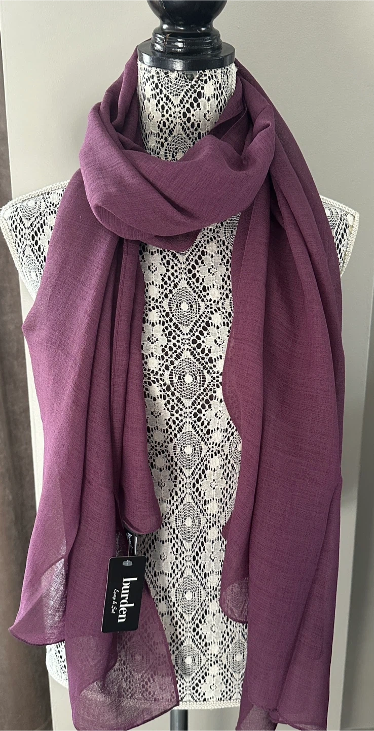 287This is a lovely purple scarf. The material is lightweight and flowy, perfect for any season Brand new with tags