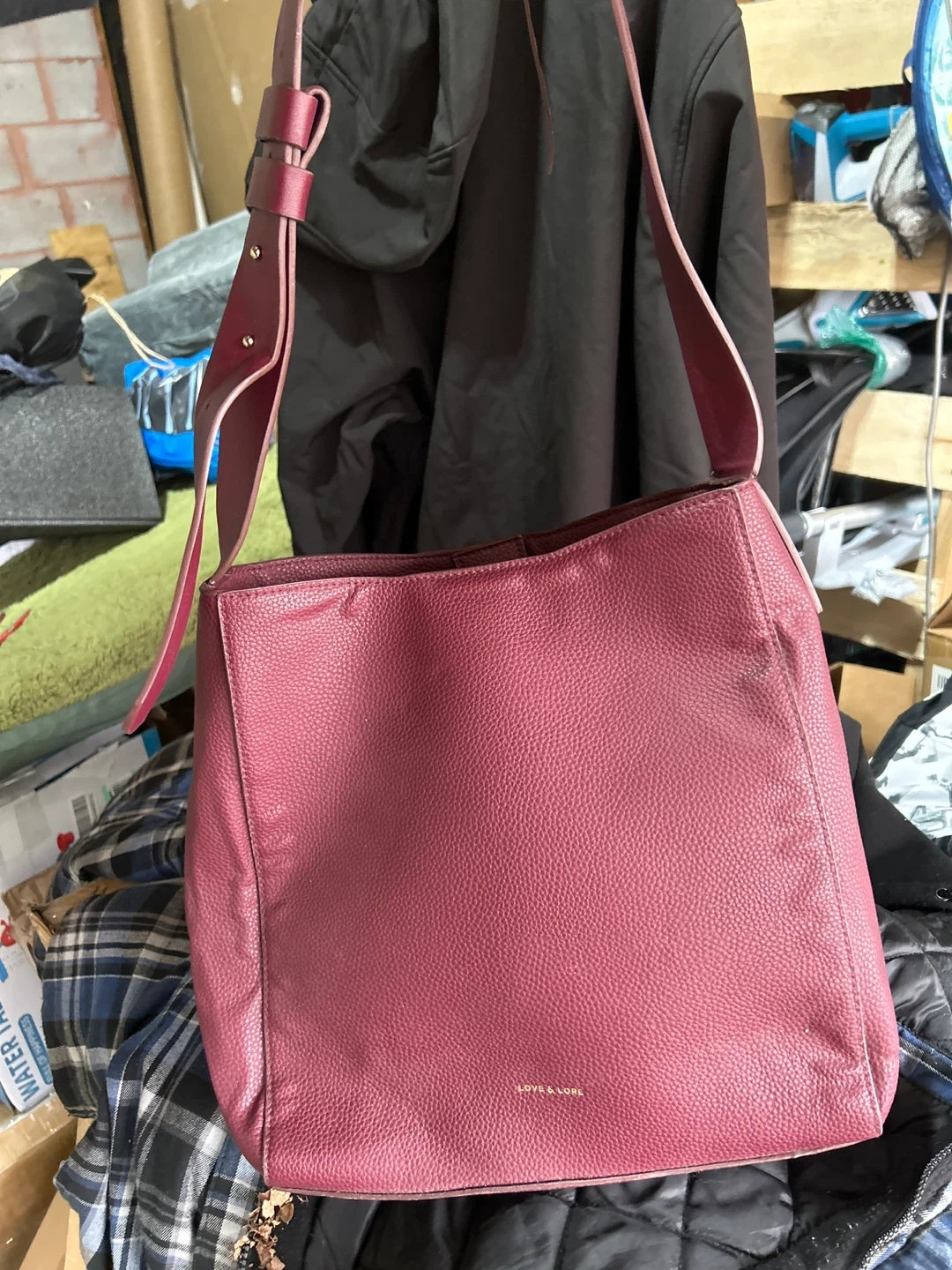 102I'm selling a tote bag in a lovely burgundy colour. It's in good condition and ready for a new home! The bag is perfect for carrying your everyday essentials with style and ease