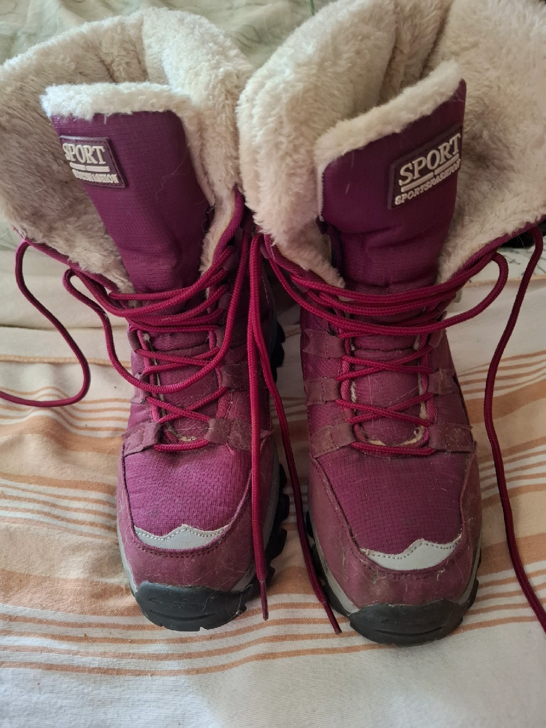 65Selling a pair of burgundy winter boots. They are a size 38. The boots have a faux fur lining to keep your feet warm and cozy during the winter months. Only worn a few times!