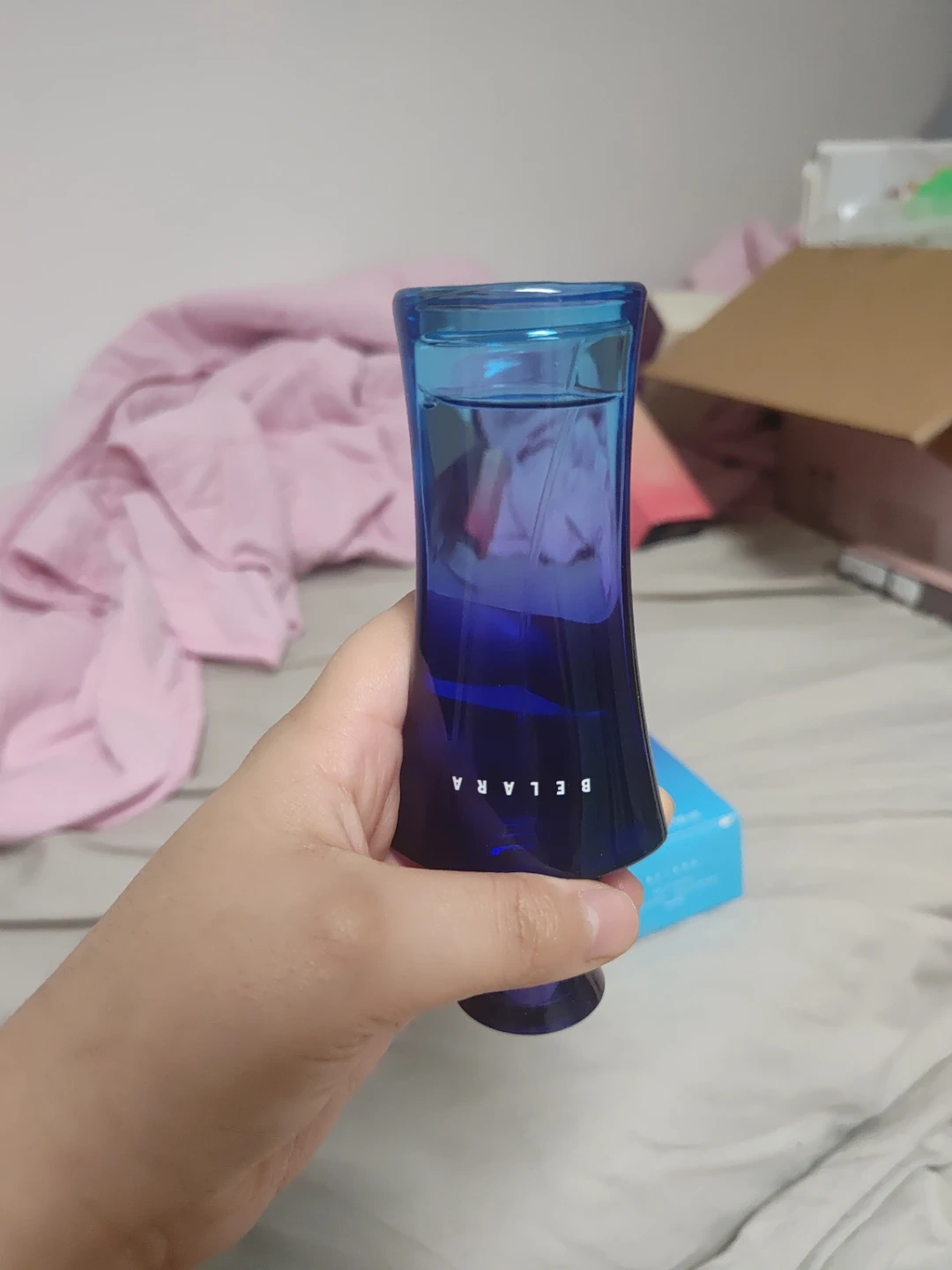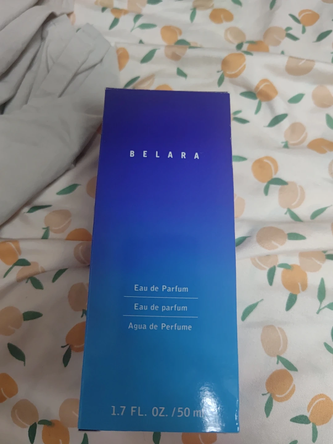 This is BELARA Eau de Parfum. It's a 50 ml bottle. The fragrance comes in a blue gradient bottle. Includes original box.