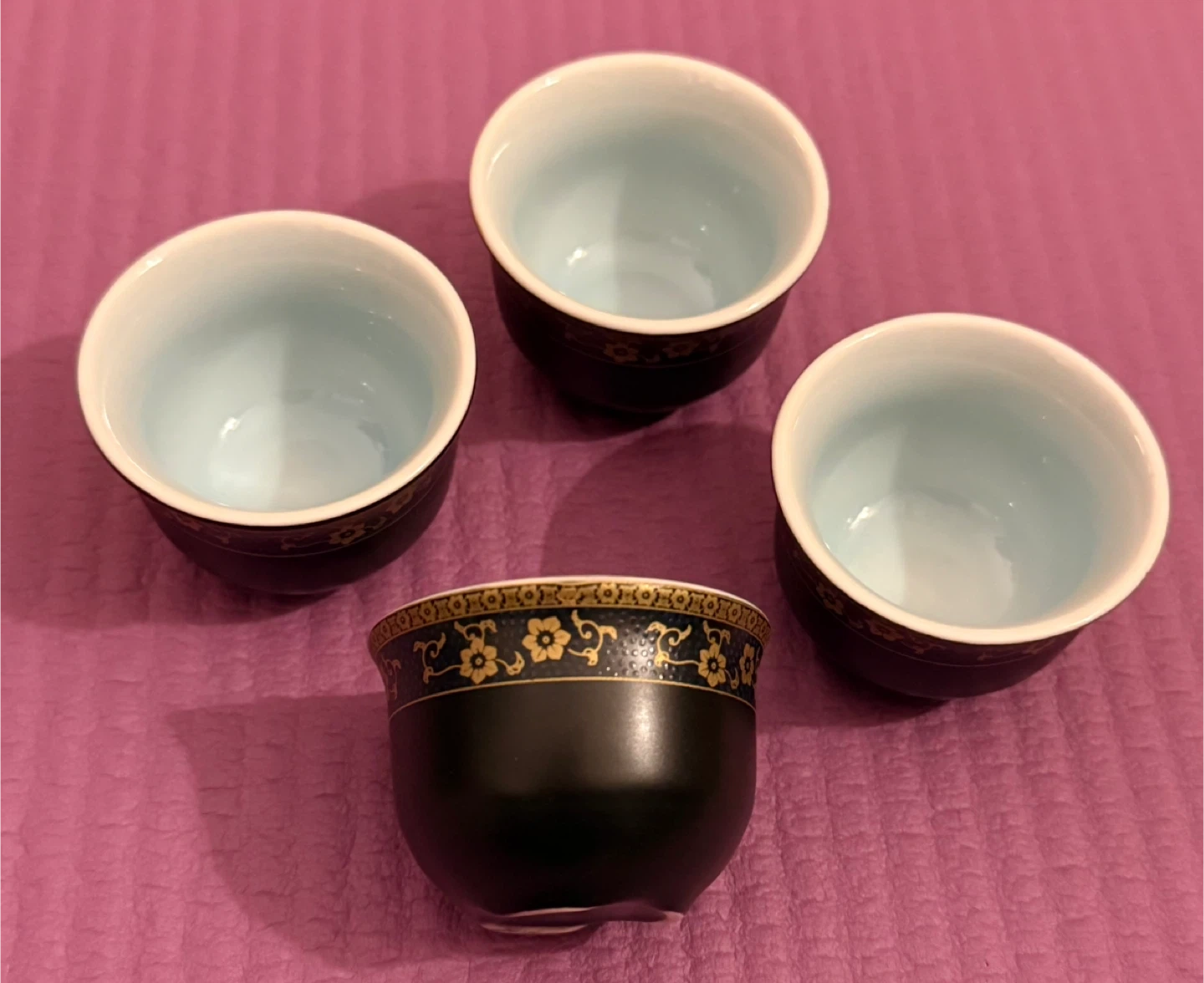Set of 4 Black and Gold Floral Tea Cups 🏆