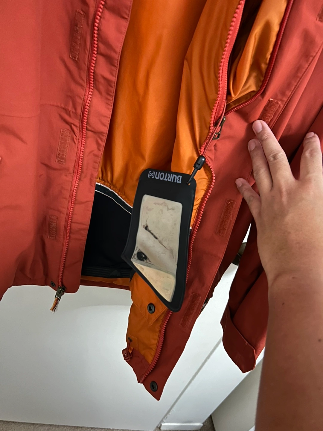 23Men's size L. GORE-TEX. Has a pocket for your pass, phone and gloves.