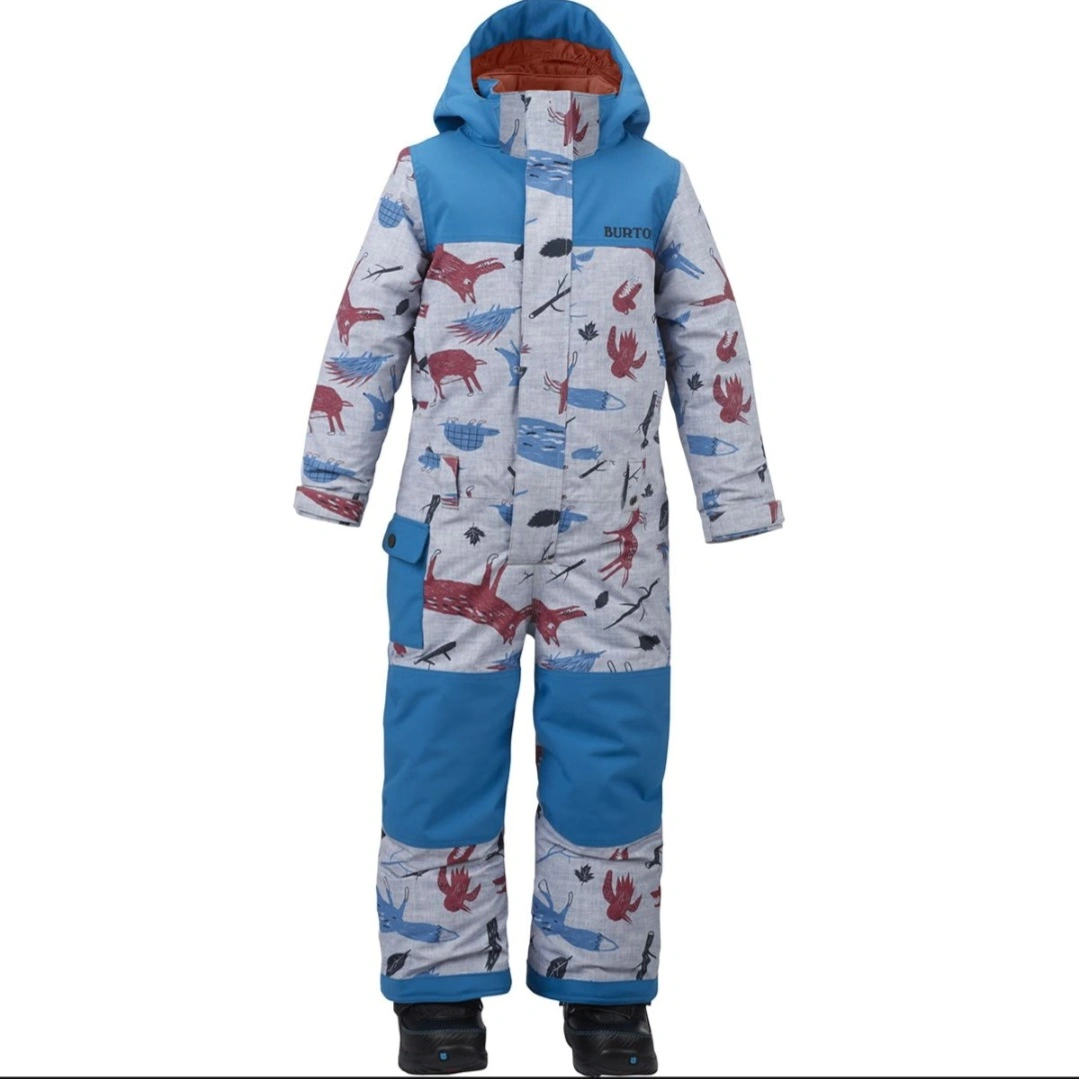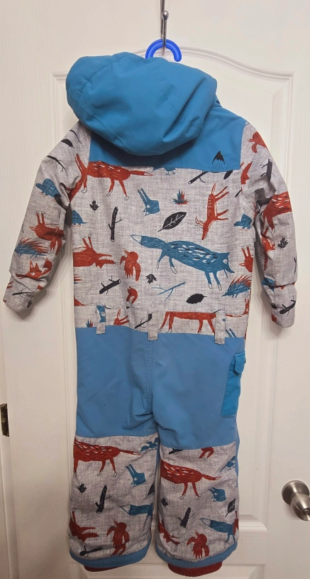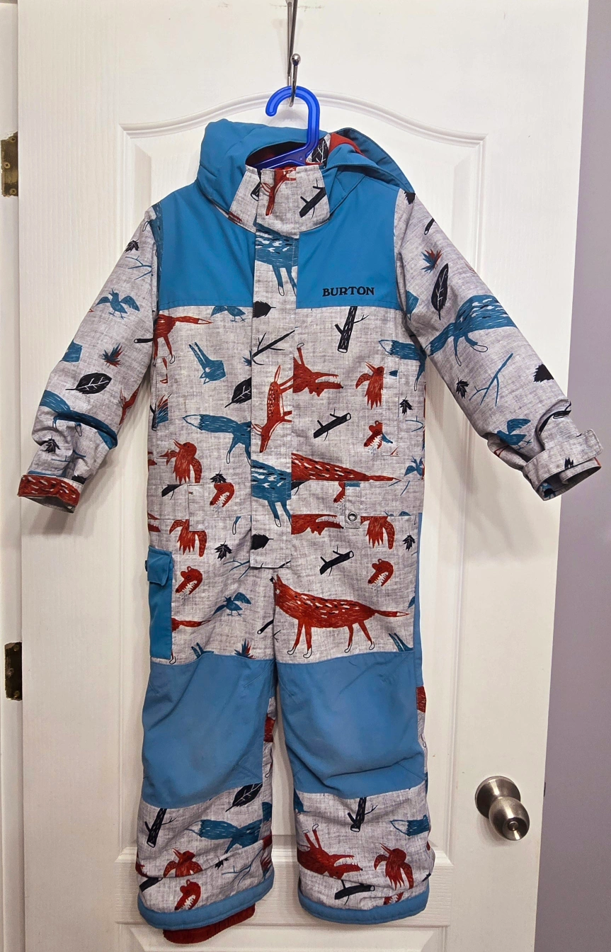 -Burton Striker One-Piece Snow Suit for toddlers -This snowsuit is designed to keep children warm and dry with features like waterproof and windproof materials -It often includes "Room-to-Grow" technology, which allows the sleeves and legs to extend, making it usable for more than one season as a child grows -The suit is insulated and may feature abrasion-resistant patches for durability -AGE 4 years old