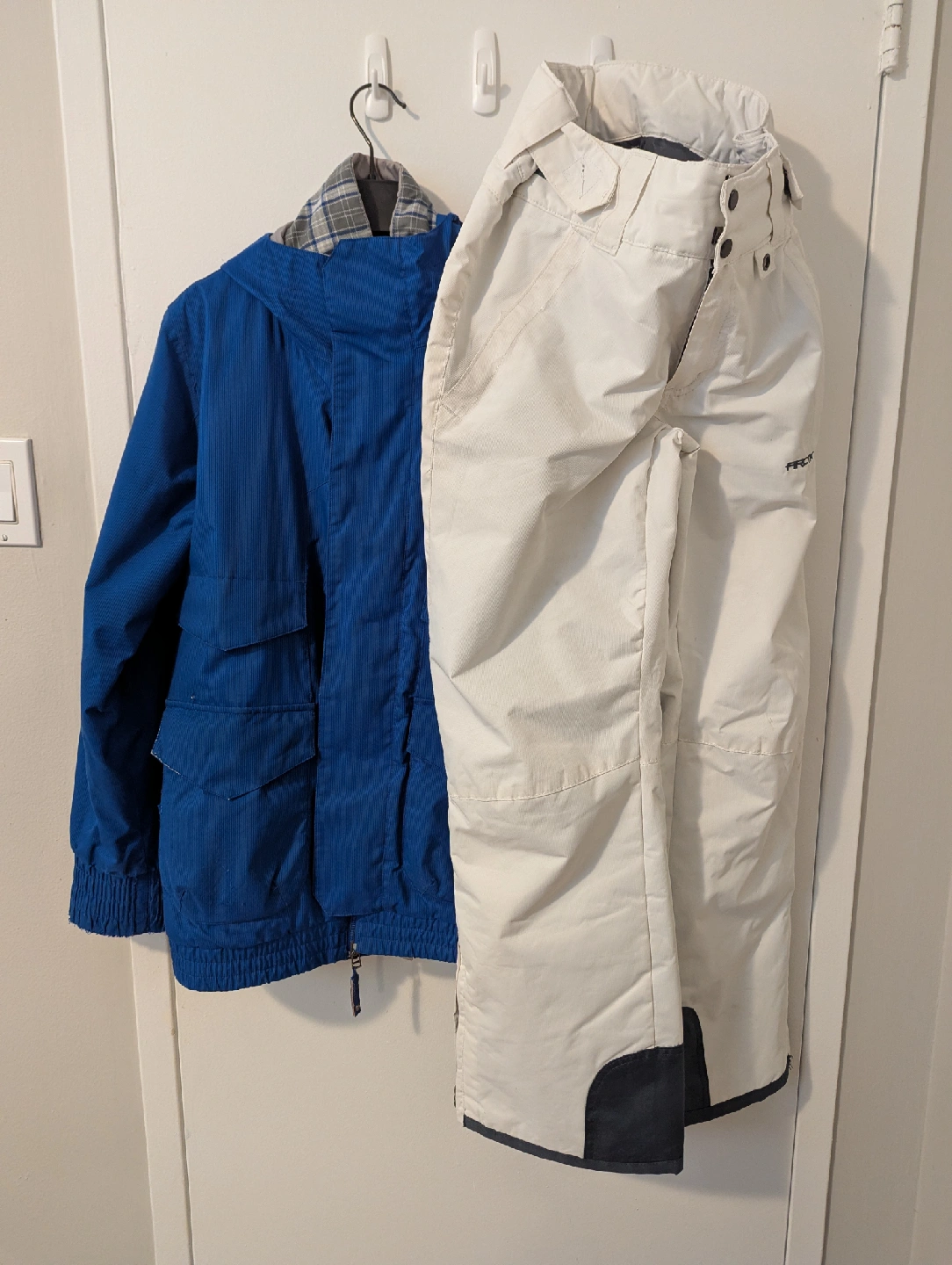 Selling a Burton snowboard jacket and Arctix snowpants (both women's size M). Jacket has double layer insulation and lots of pockets and arm vents. Snowpants can cinch tighter at the waist. Both very warm and waterproof. Moving sale - needs to move fast. Open to negotiation.