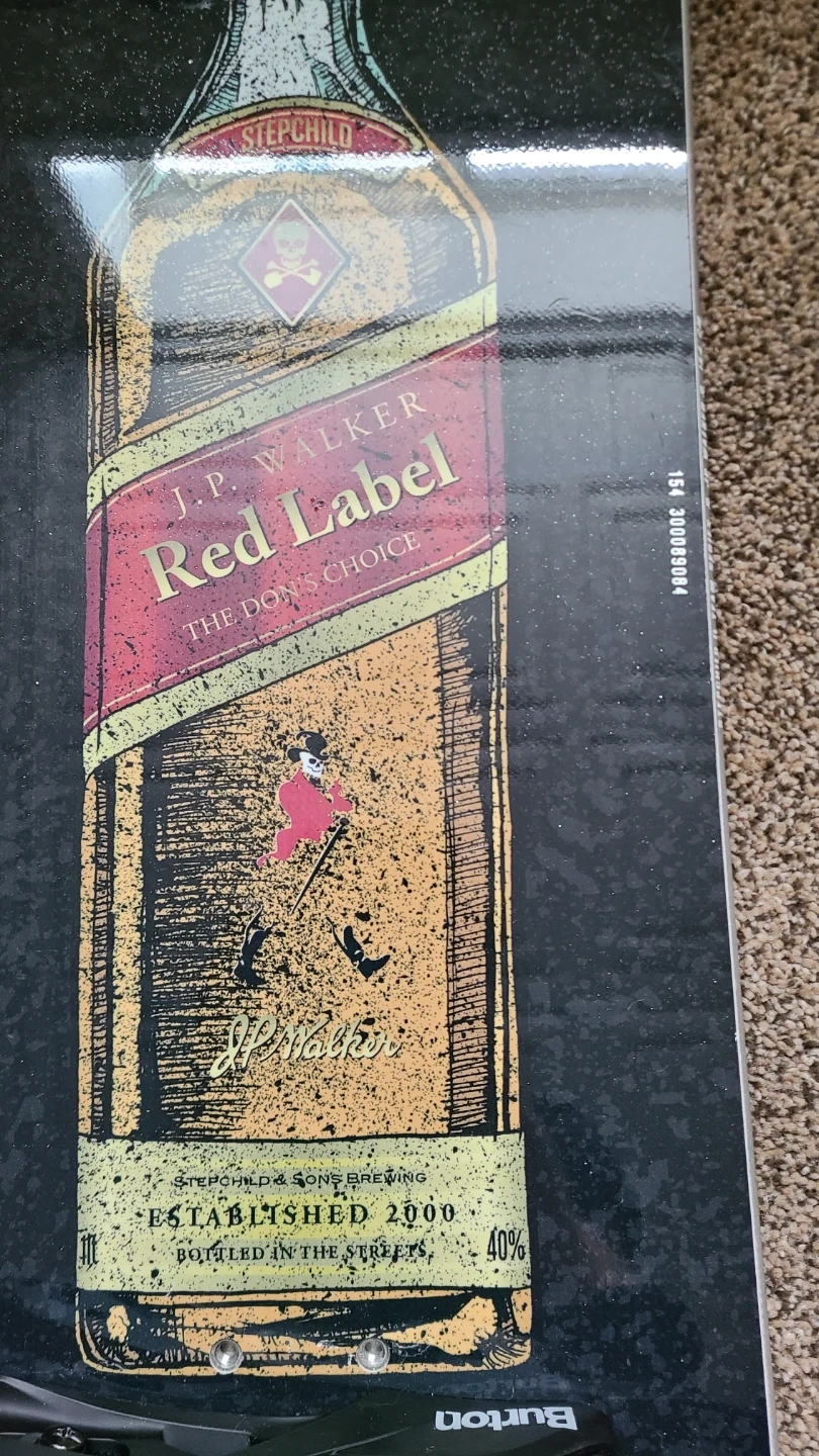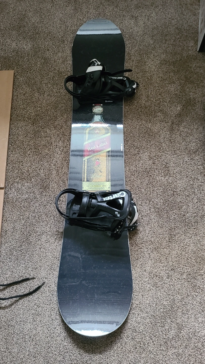 10Selling a Burton snowboard with a unique design featuring a Red Label graphic! Also included are Vans Implant snowboard boots, size 8.5 US. Great setup for hitting the slopes this winter. 154, Stepchild JP Walker snowboard Burton Cartel bindings (small) Vans Implants boots (8.5) Burton snowboard bag Electric goggles, with case/day and night lens Commander RED helmet Everythings in good condition and I just don't have the time to snowboard anymore.
