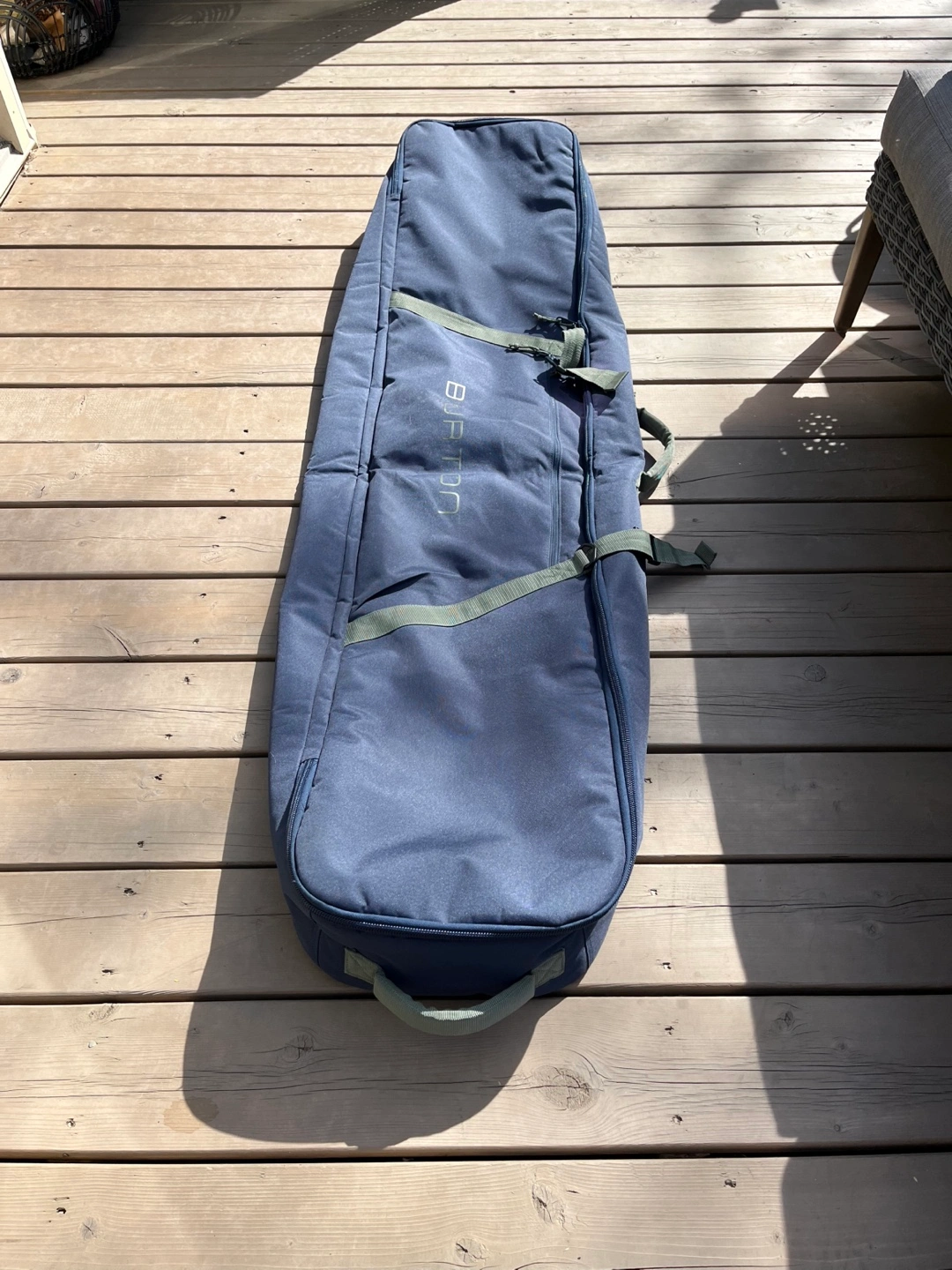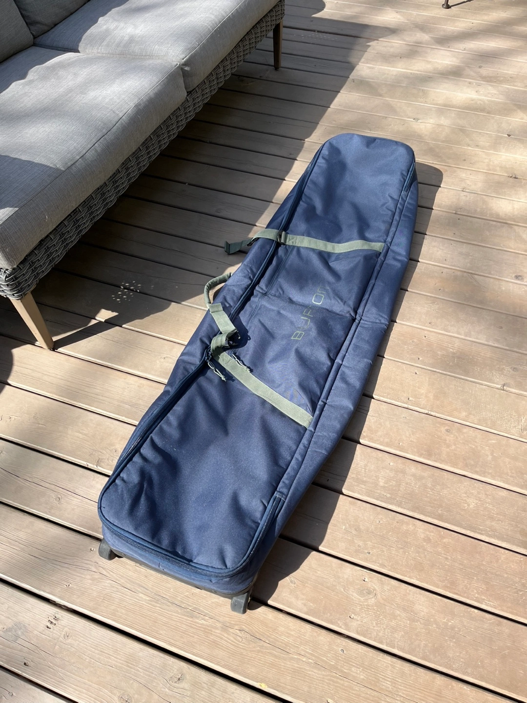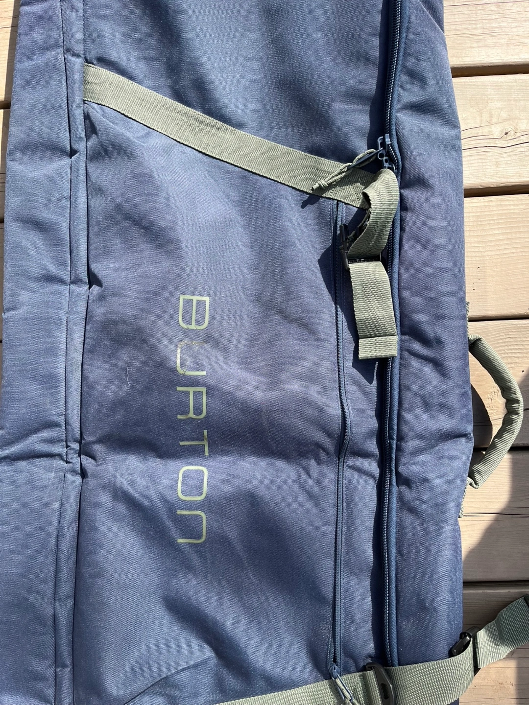 Selling as i needed a larger bag to fit more gear. This bag is in a great condition, aside from 2-3 slight fading patches on the inner liner (no impact on safety). It’s lightly padded, has wheels, comes with a shoulder strap, and is perfect for travelling. I’ve managed to fit 2x snowboards, bindings, boots, helmet, and all accessories in here! Gorgeous navy and olive green colour way. Pick up in oakville