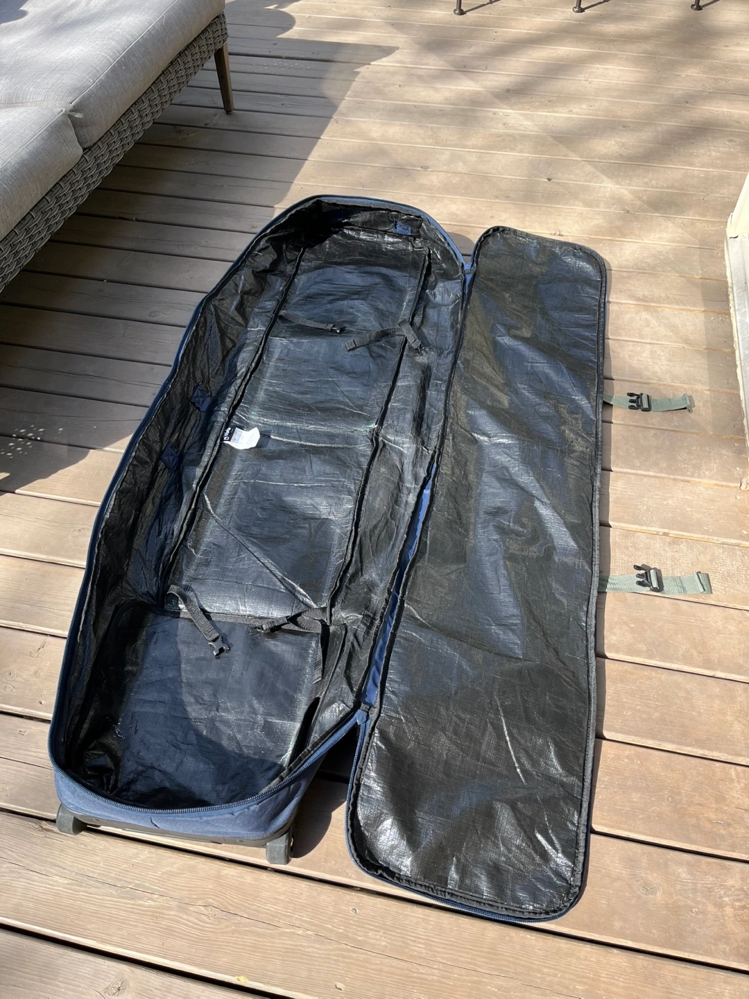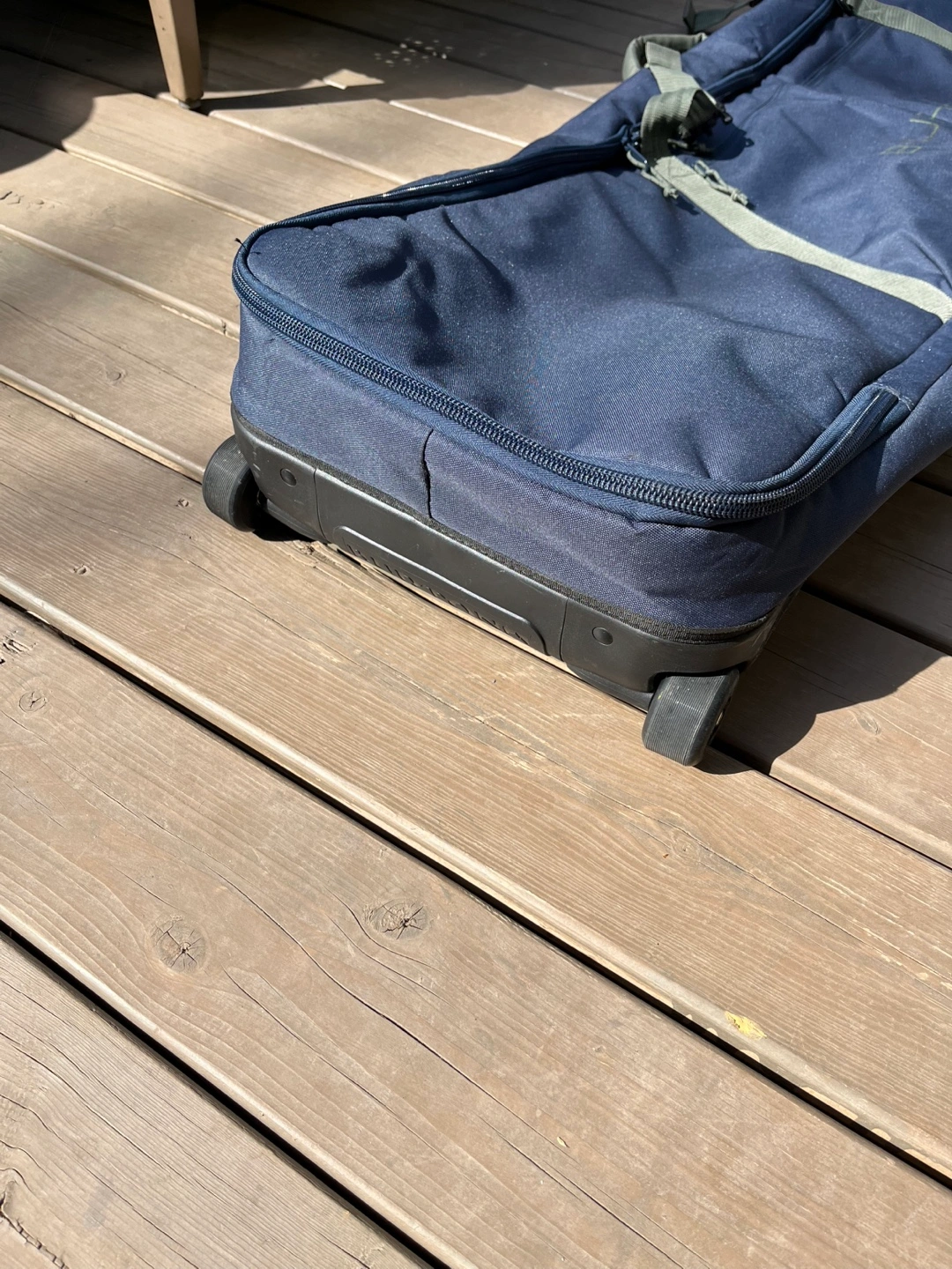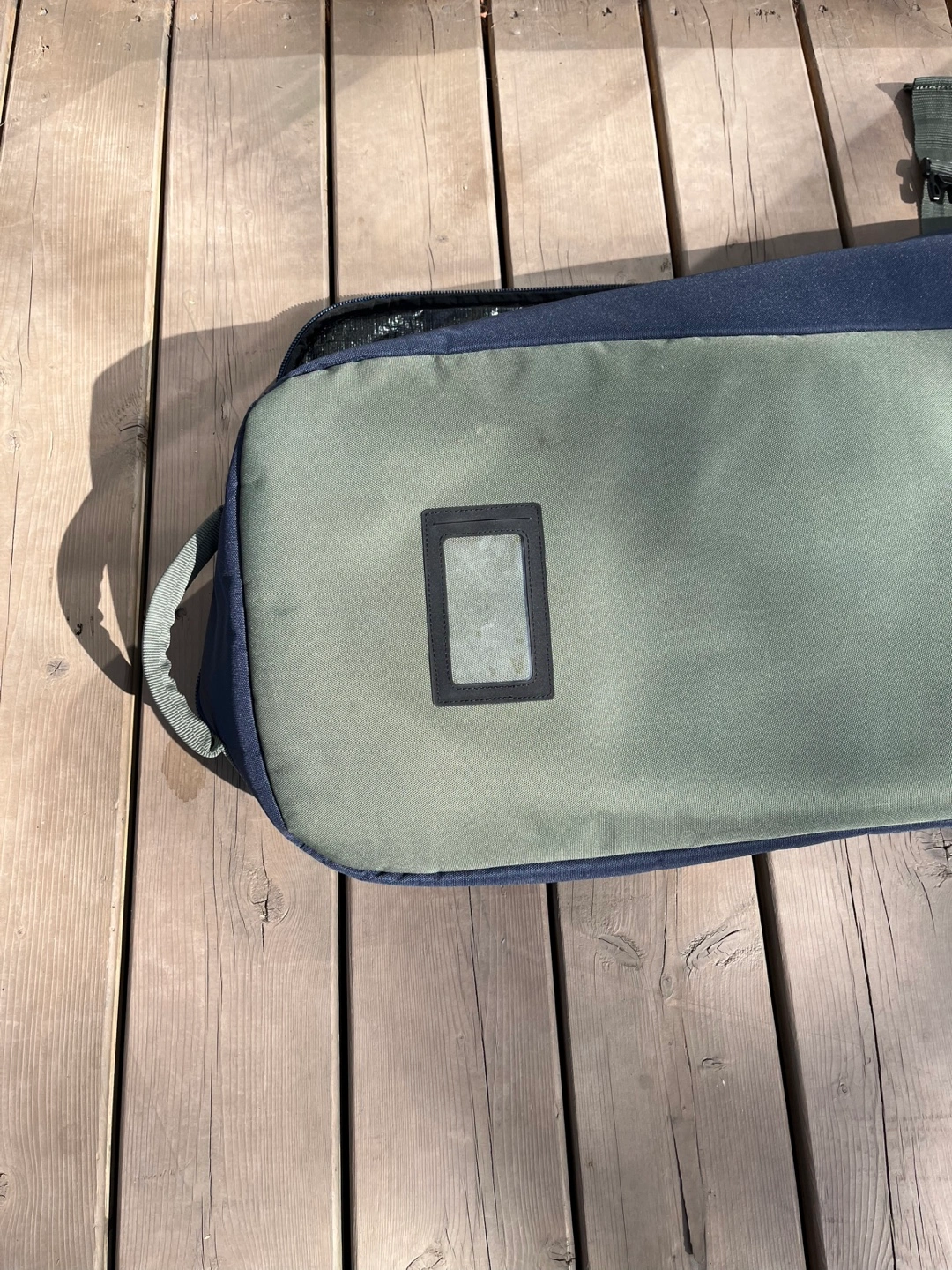 Selling as i needed a larger bag to fit more gear. This bag is in a great condition, aside from 2-3 slight fading patches on the inner liner (no impact on safety). It’s lightly padded, has wheels, comes with a shoulder strap, and is perfect for travelling. I’ve managed to fit 2x snowboards, bindings, boots, helmet, and all accessories in here! Gorgeous navy and olive green colour way. Pick up in oakville