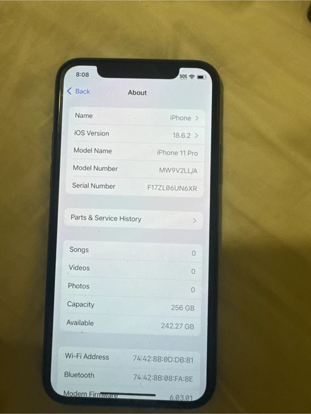 Buy & SellApple iPhone 11 Pro 256 GBApple iPhone 11 Pro 256 GB$250Apple iPhone 11 Pro with 256 GB storage. It runs on iOS version 18.6.2. The model number is MW9V2LL/A.ConditionNewBrandAppleWHERE TO MEETAcme SupermarketView MapSELLERverifiedtonyPark Hill600 reviews0 chats·0 favorites·29 viewsSEND CHAT TO SELLERHi tony! I’m interested in your listing.Hi tony! I’m interested in your listing.Get the Karrot app to chatSign In to chat