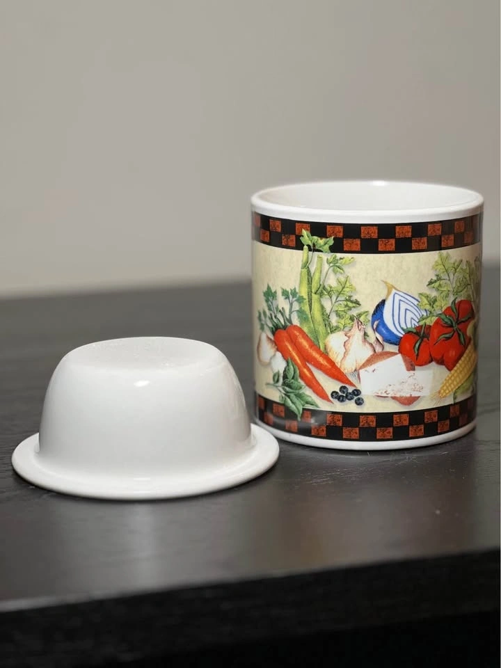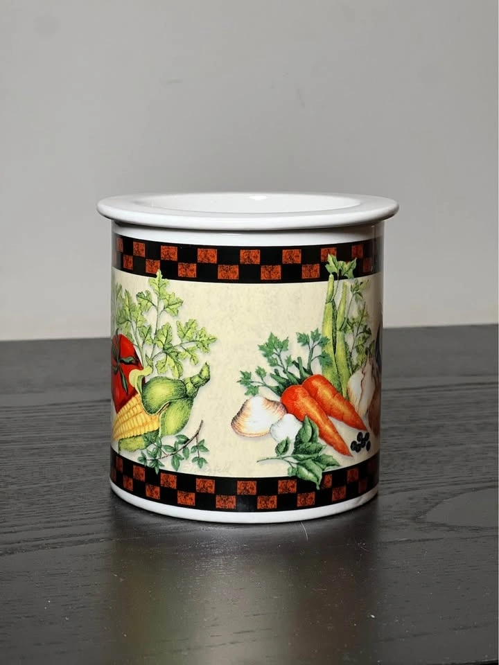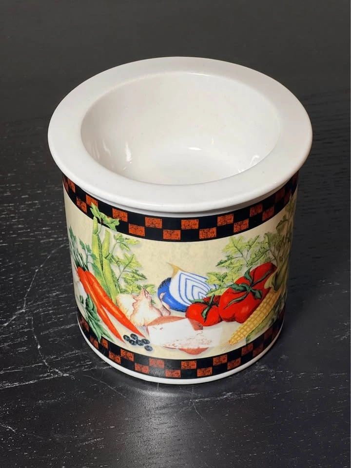 This beautiful porcelain dip chiller from Youngs Incorporated features an all-over vegetable harvest pattern in multicolor. The 2-piece set includes a ceramic bowl with a diameter of 4 inches and a height of 4 inches, perfect for keeping your dips cool and fresh. It has a glossy finish. Made in China, it's perfect for serving dips and sauces at parties or gatherings. Add dip in the top bowl and ice in the bottom to keep your dips chilled and ready to serve! Pre-owned. Pickup is 58th and 7th ave in midtown Manhattan.