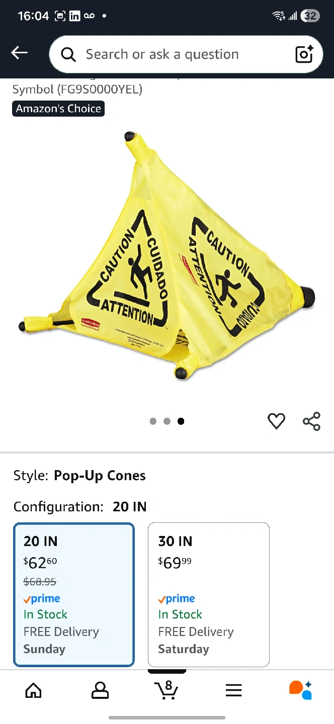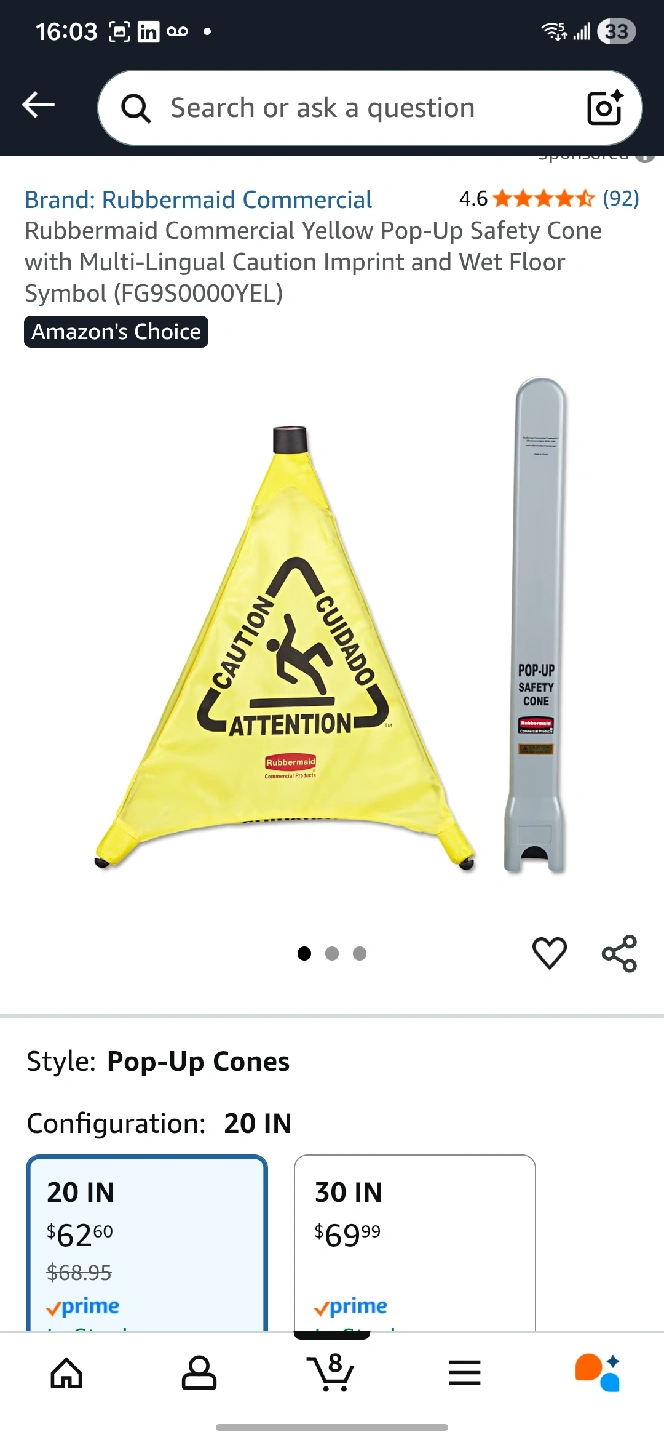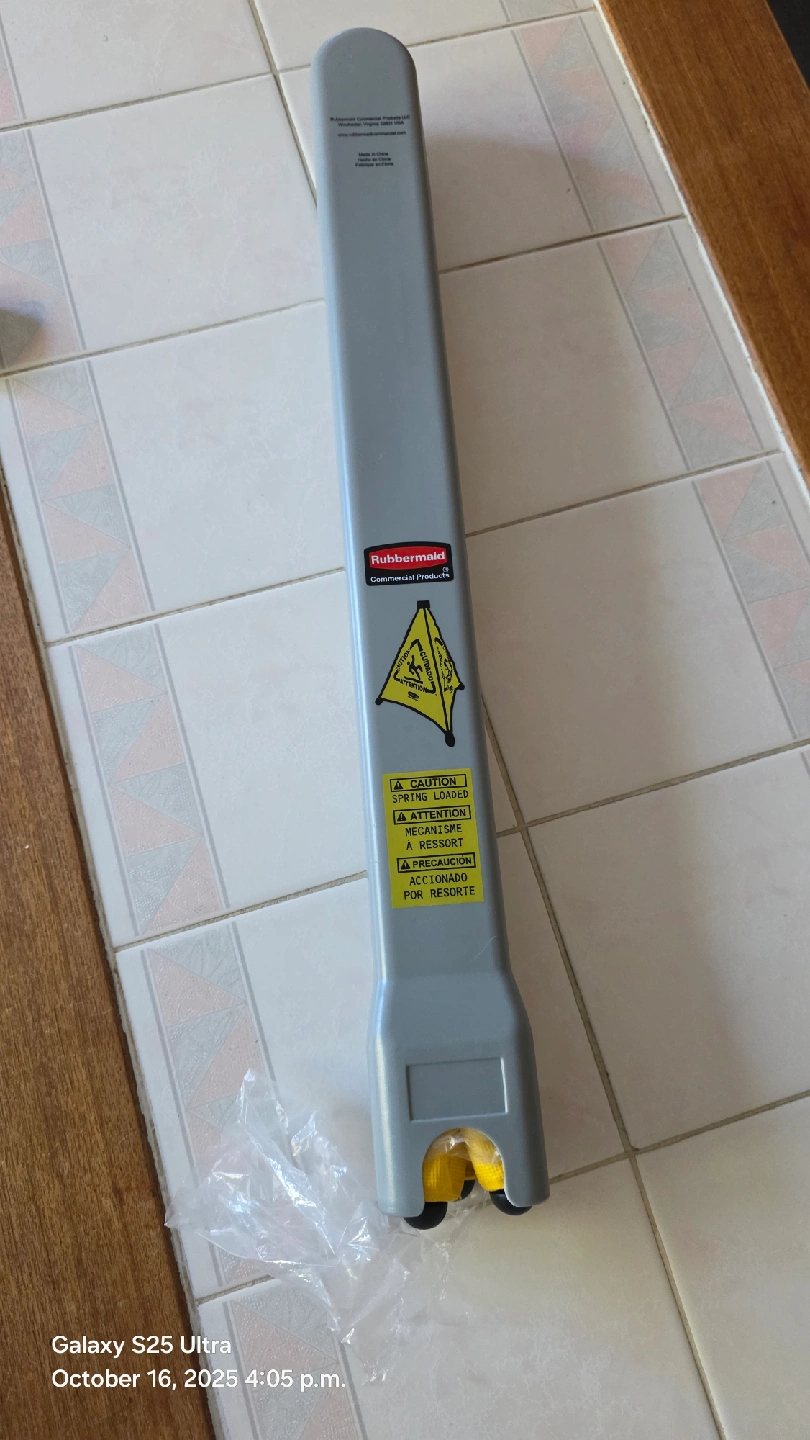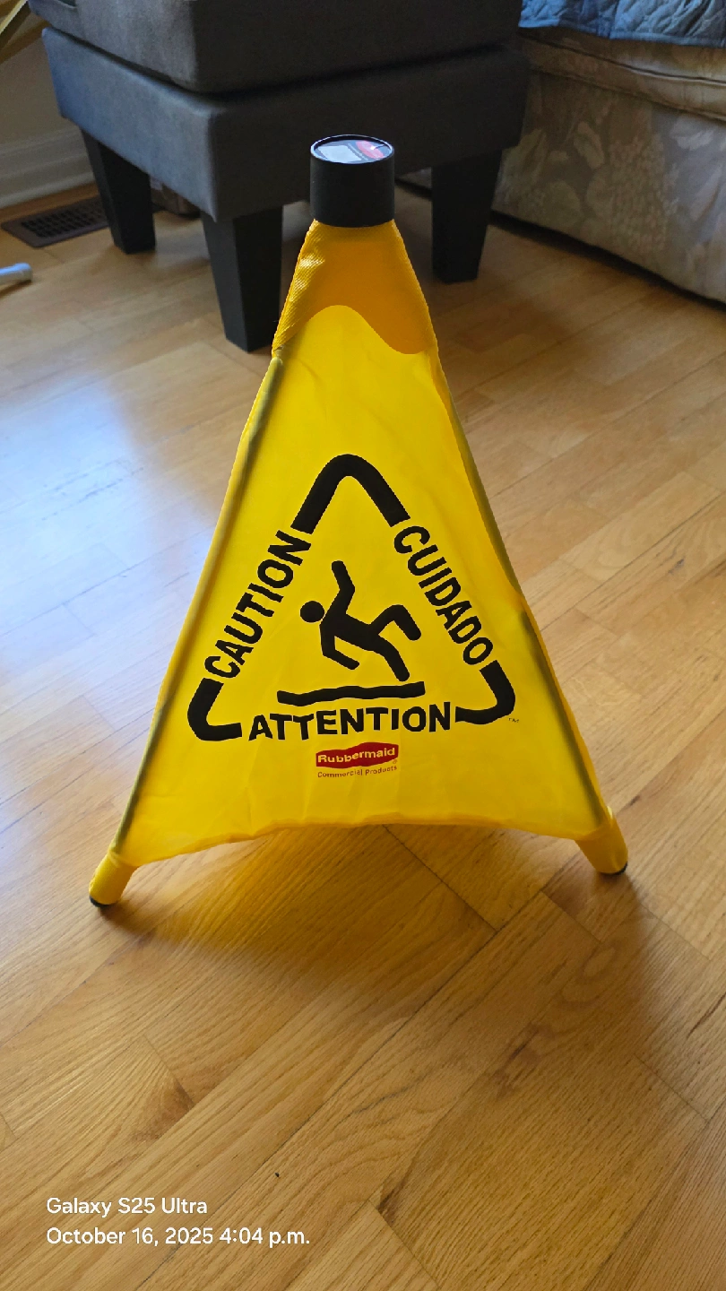Selling a Rubbermaid Commercial yellow pop-up safety cone. It has a multi-lingual caution symbol imprint and is perfect for wet floors. The configuration is 20 IN. Originally bought for $62.60