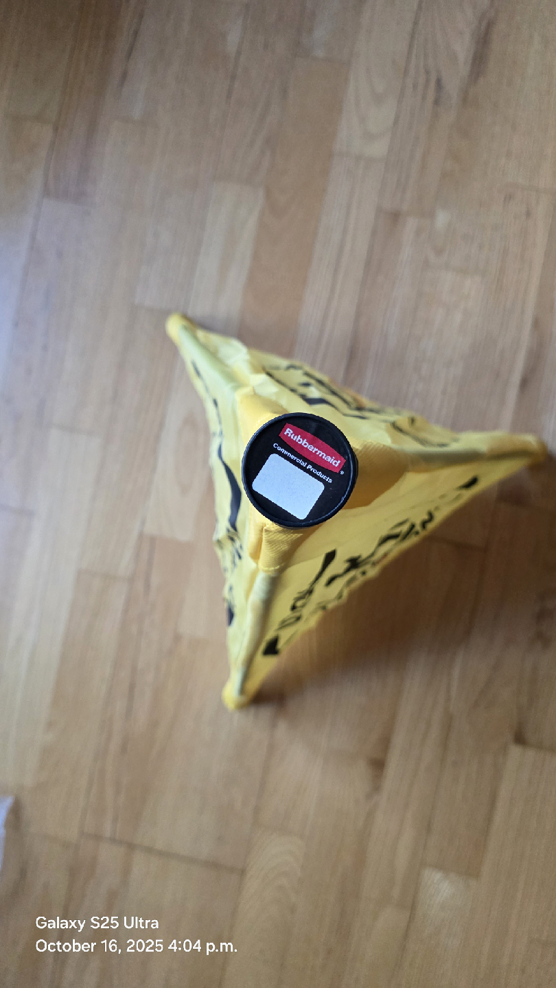 Selling a Rubbermaid Commercial yellow pop-up safety cone. It has a multi-lingual caution symbol imprint and is perfect for wet floors. The configuration is 20 IN. Originally bought for $62.60