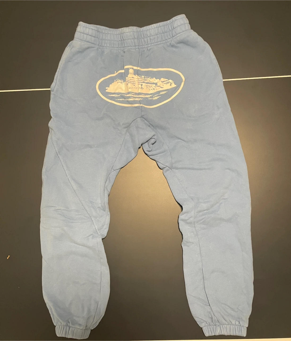 10Selling a pair of Butter Goods sweatpants in a nice blue colour. They feature a unique design on the back. Perfect for casual wear!