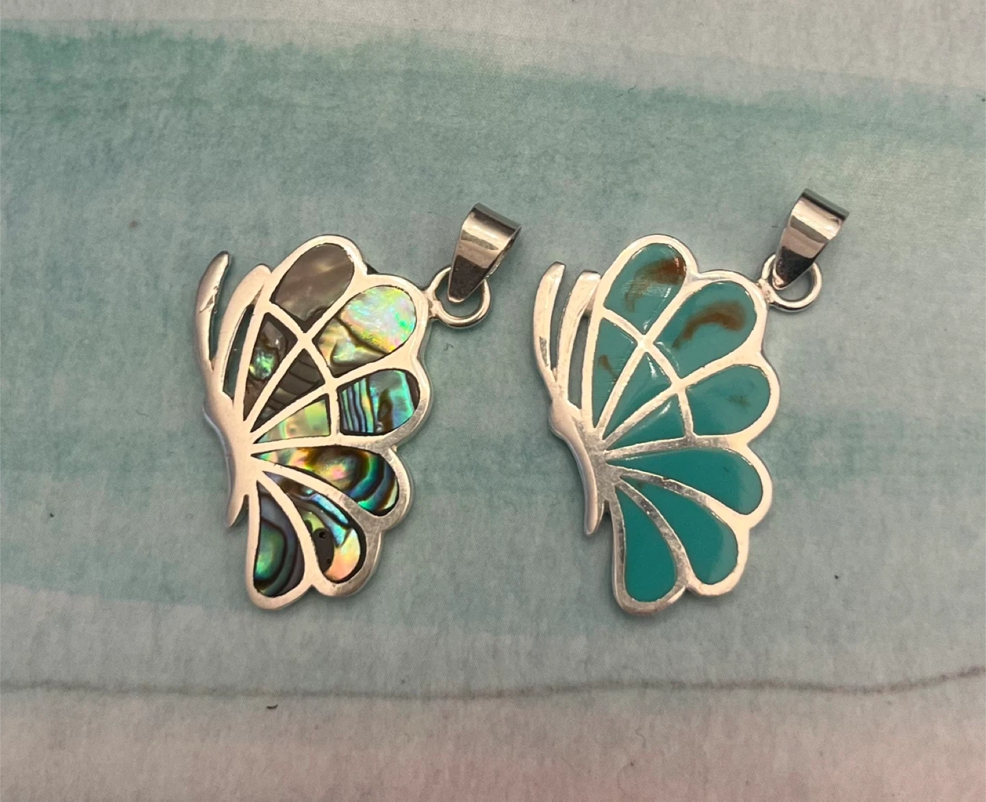 1000+Butterfly pendants. Two colours- one with beautiful abalone wings and one in turquoise with unique markings. Pendants only, no chains. Never been worn. No stamps or markings on the back. Price is per item. Available for pickup in Markland Wood.