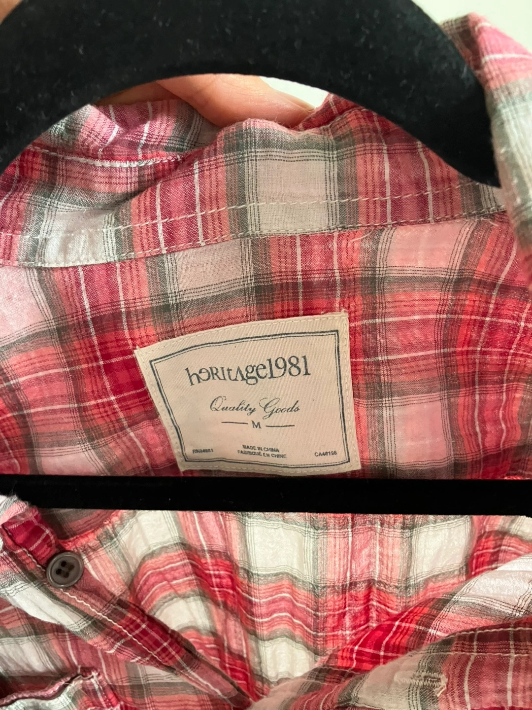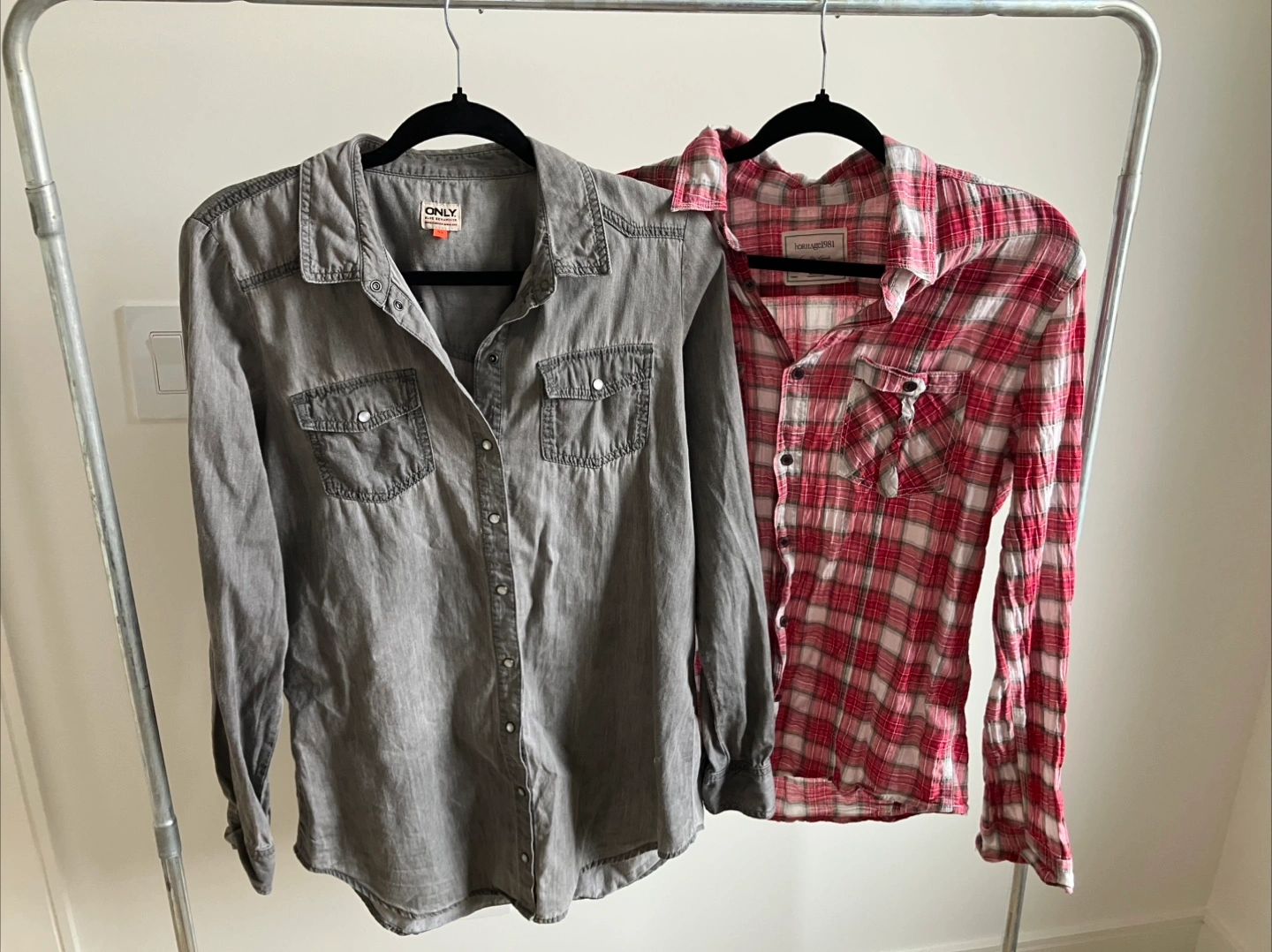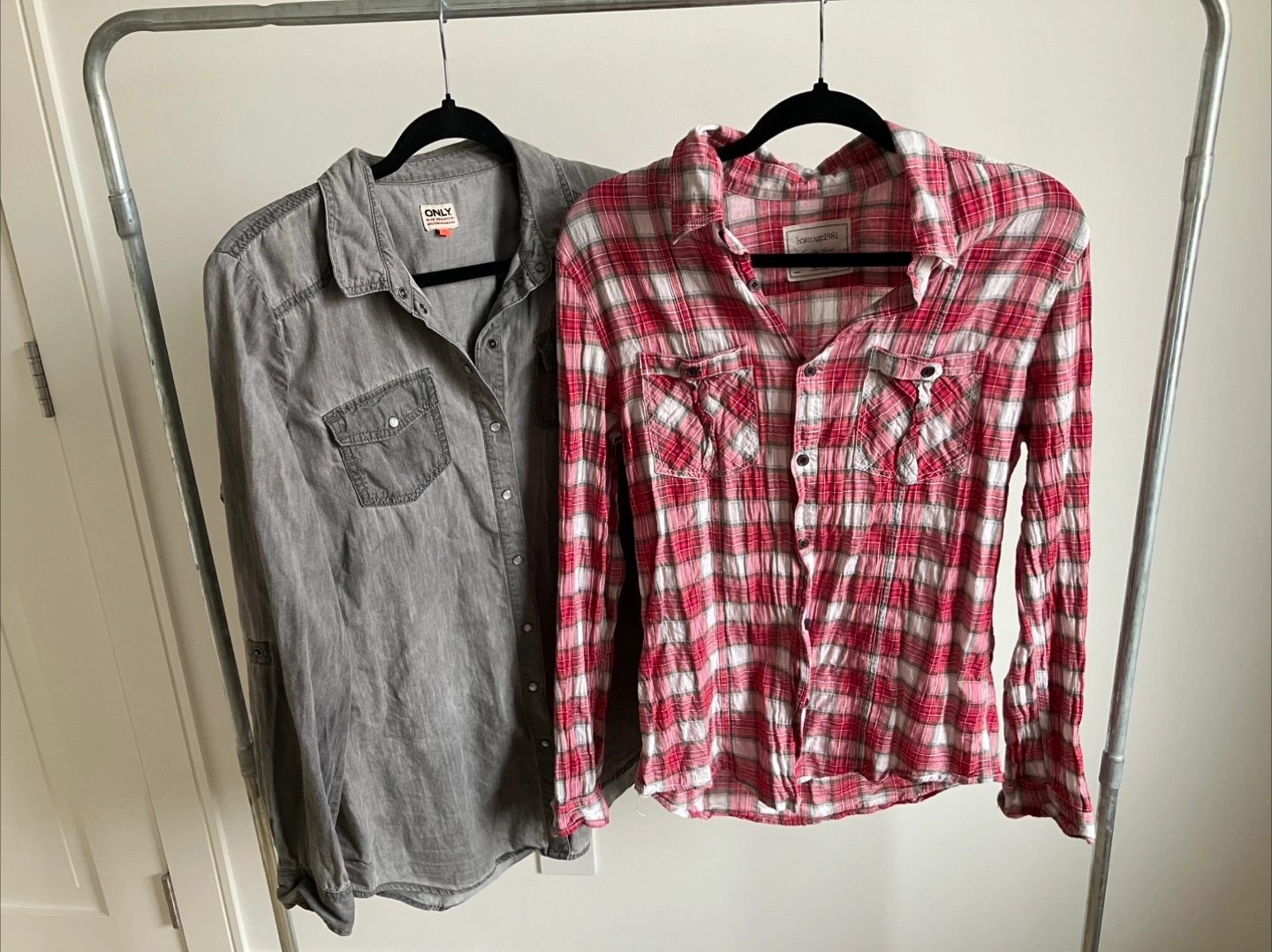108Two shirts for sale! One is a grey button-up shirt from Only, size 40 (Medium). The other is a red and white plaid shirt from Heritage 1981, size M. Both are in great condition. Can also sell individually.